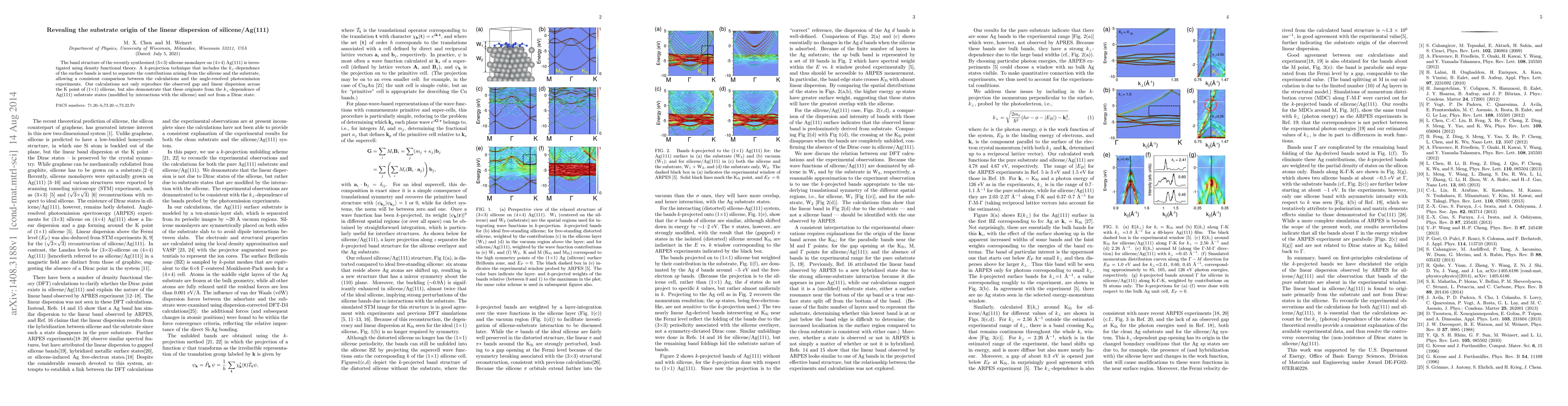 This study uses density functional theory and a $k$-projection technique to show that the linear dispersion in the band structure of silicene on Ag(111) originates from substrate states influenced by the silicene layer, rather than a Dirac state. This finding aligns with experimental angle-resolved photoemission data.
