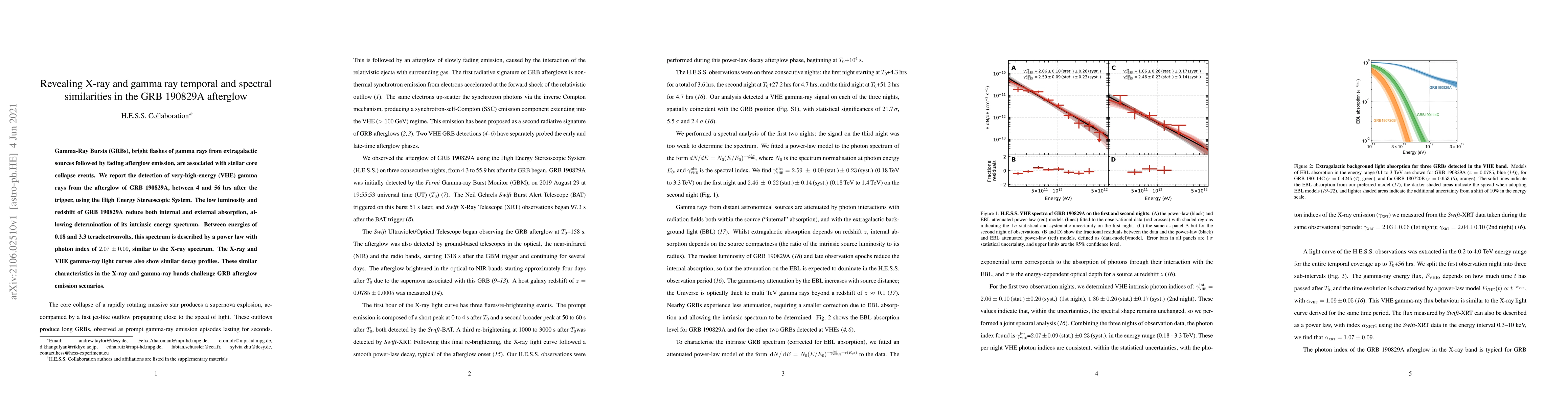 This paper reports the detection of very-high-energy gamma rays from the afterglow of GRB 190829A, revealing a power law spectrum similar to the x-ray spectrum, which challenges existing GRB afterglow emission models. The temporal and spectral similarities between x-ray and gamma-ray emissions suggest new insights into the physical processes at play.