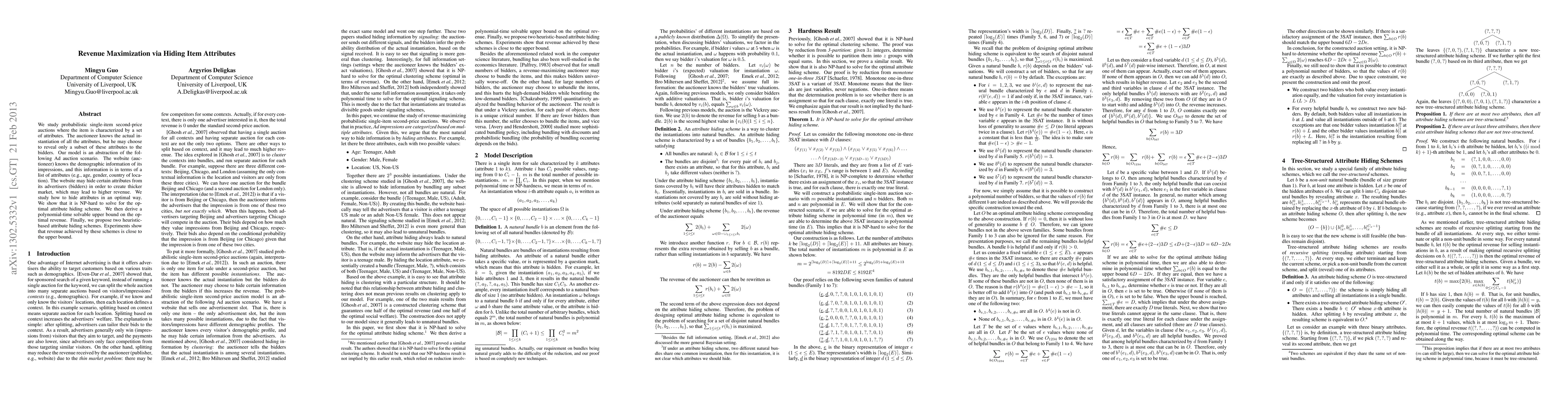 This paper explores optimal strategies for hiding item attributes in single-item second-price auctions to maximize revenue, demonstrating that finding the best hiding scheme is NP-hard. It proposes heuristic methods and shows they achieve near-optimal revenue.