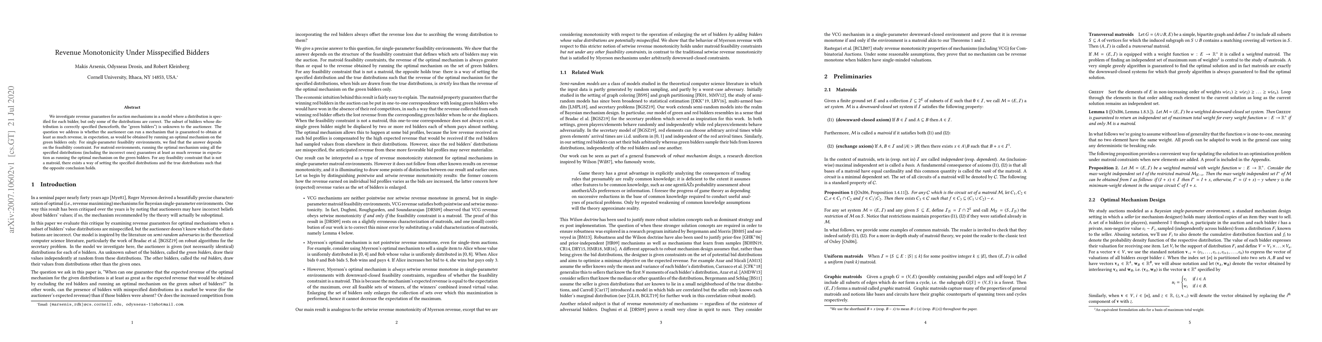 We investigate revenue guarantees for auction mechanisms in a model where a distribution is specified for each bidder, but only some of the distributions are correct. The subset of bidders whose distribution is correctly specified (henceforth, the "green bidders") is unknown to the auctioneer. The question we address is whether the auctioneer can run a mechanism that is guaranteed to obtain at least as much revenue, in expectation, as would be obtained by running an optimal mechanism on the green bidders only. For single-parameter feasibility environments, we find that the answer depends on the feasibility constraint. For matroid environments, running the optimal mechanism using all the specified distributions (including the incorrect ones) guarantees at least as much revenue in expectation as running the optimal mechanism on the green bidders. For any feasibility constraint that is not a matroid, there exists a way of setting the specified distributions and the true distributions such that the opposite conclusion holds.