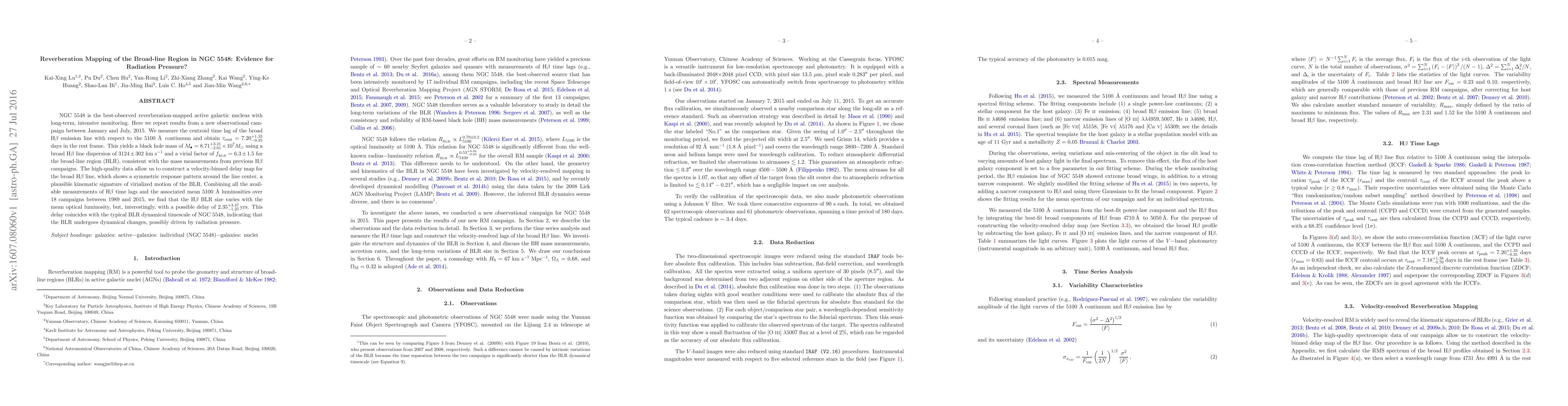 This study uses reverberation mapping of NGC 5548 to measure the time lag between the broad H$\beta$ emission line and the 5100 Å continuum, yielding a black hole mass estimate. The analysis suggests that the broad-line region's size varies with optical luminosity, hinting at radiation pressure driving the BLR's dynamical changes.
