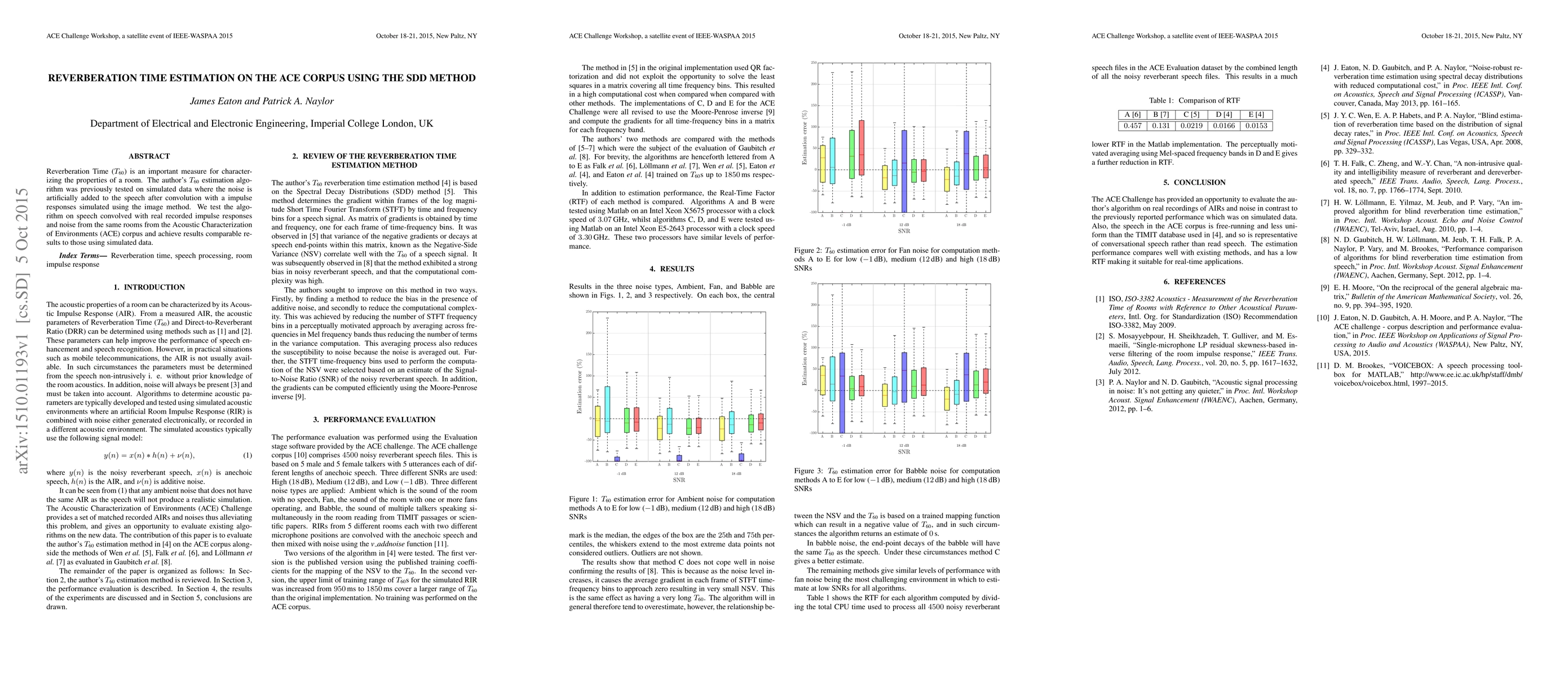 Reverberation Time (T60) is an important measure for characterizing the properties of a room. The author's T60 estimation algorithm was previously tested on simulated data where the noise is artificially added to the speech after convolution with a impulse responses simulated using the image method. We test the algorithm on speech convolved with real recorded impulse responses and noise from the same rooms from the Acoustic Characterization of Environments (ACE) corpus and achieve results comparable results to those using simulated data.