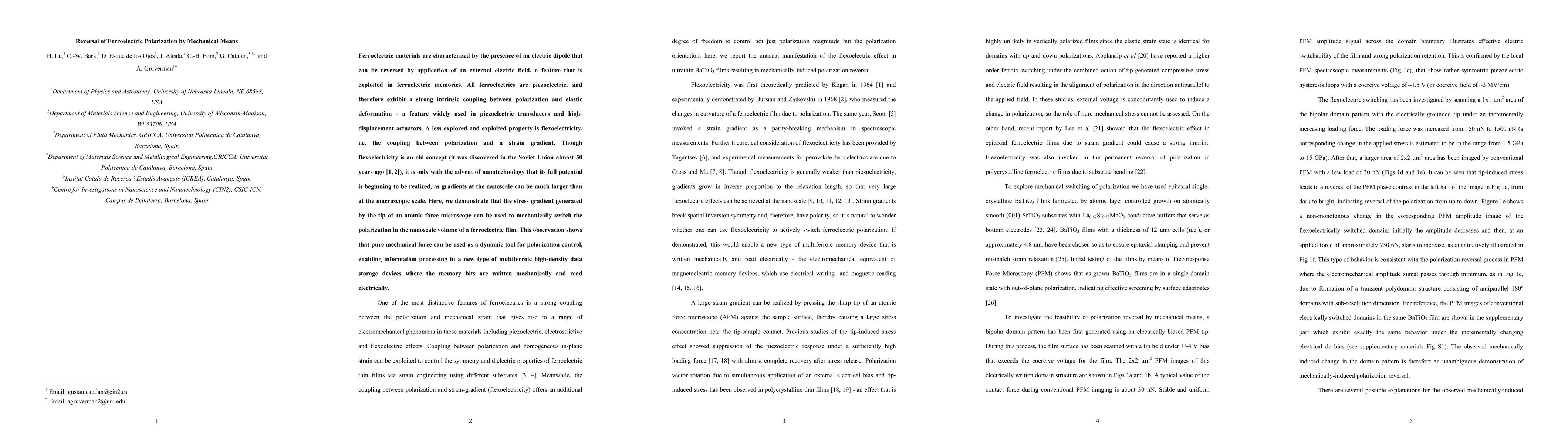 This paper demonstrates that mechanical stress gradients from an atomic force microscope tip can reverse ferroelectric polarization in nanoscale films, showcasing the potential for mechanical force to dynamically control polarization and enabling new types of multiferroic data storage devices.