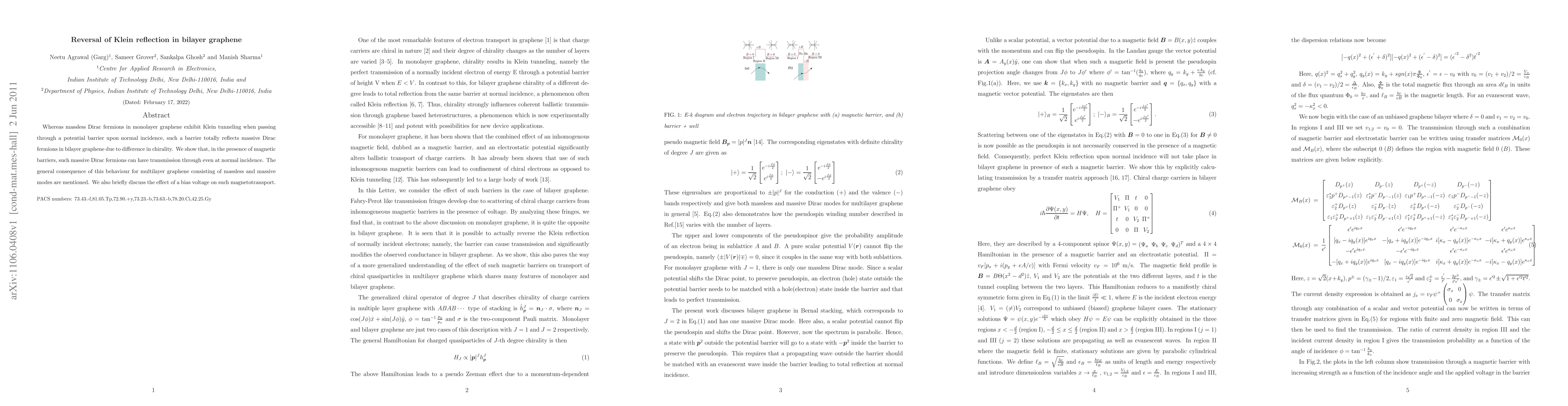 This paper demonstrates that magnetic barriers can enable transmission of massive Dirac fermions in bilayer graphene, reversing the Klein reflection effect typically observed in monolayer graphene. The study also explores the implications for multilayer graphene and the influence of bias voltage on magnetotransport.