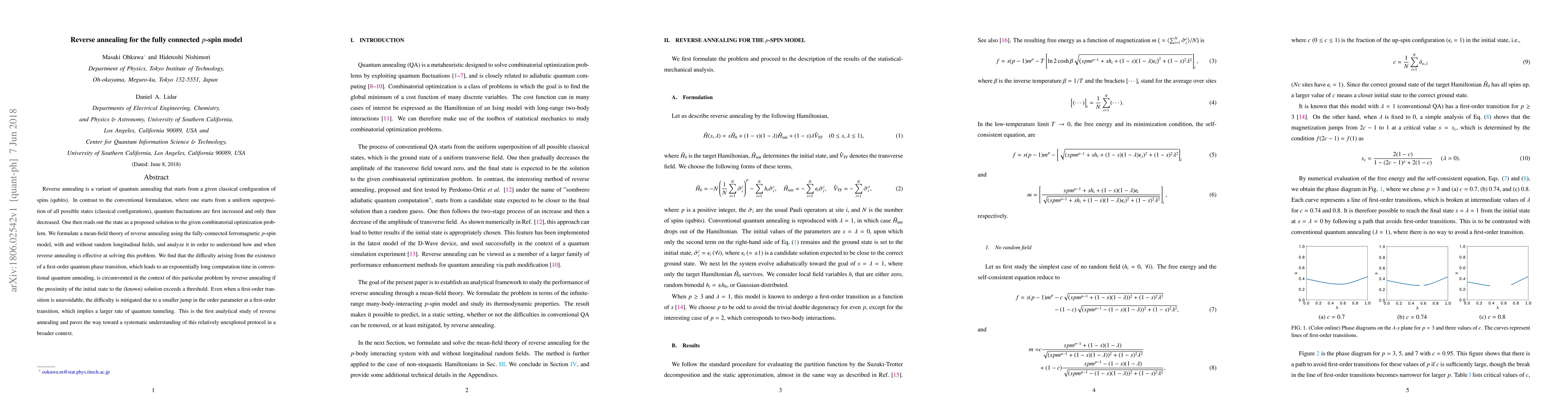 Reverse annealing, a variant of quantum annealing, starts from a classical spin configuration and increases quantum fluctuations before decreasing them to find optimization solutions. This study formulates a mean-field theory for reverse annealing in the fully-connected $p$-spin model, showing it effectively circumvents the first-order quantum phase transition issue that plagues conventional quantum annealing.