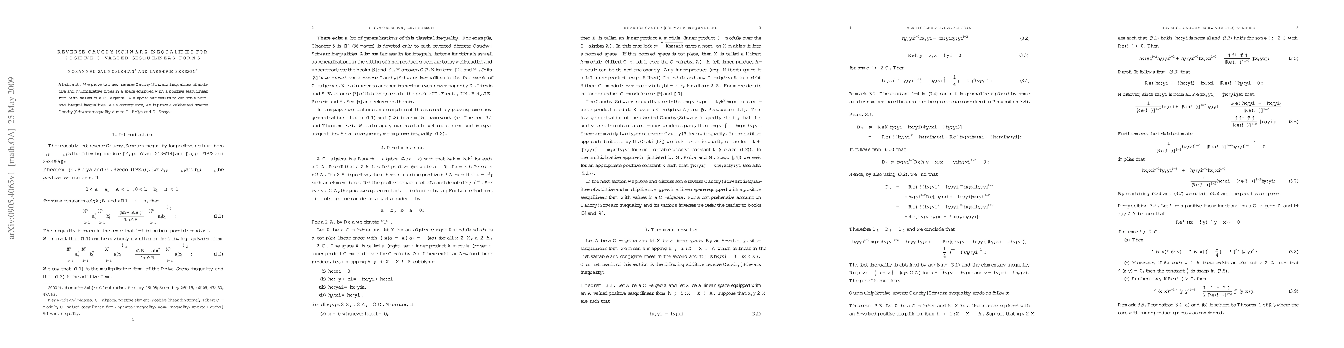 We prove two new reverse Cauchy--Schwarz inequalities of additive and multiplicative types in a space equipped with a positive sesquilinear form with values in a C*-algebra. We apply our results to get some norm and integral inequalities. As a consequence, we improve a celebrated reverse Cauchy--Schwarz inequality due to G Polya and G. Szego.