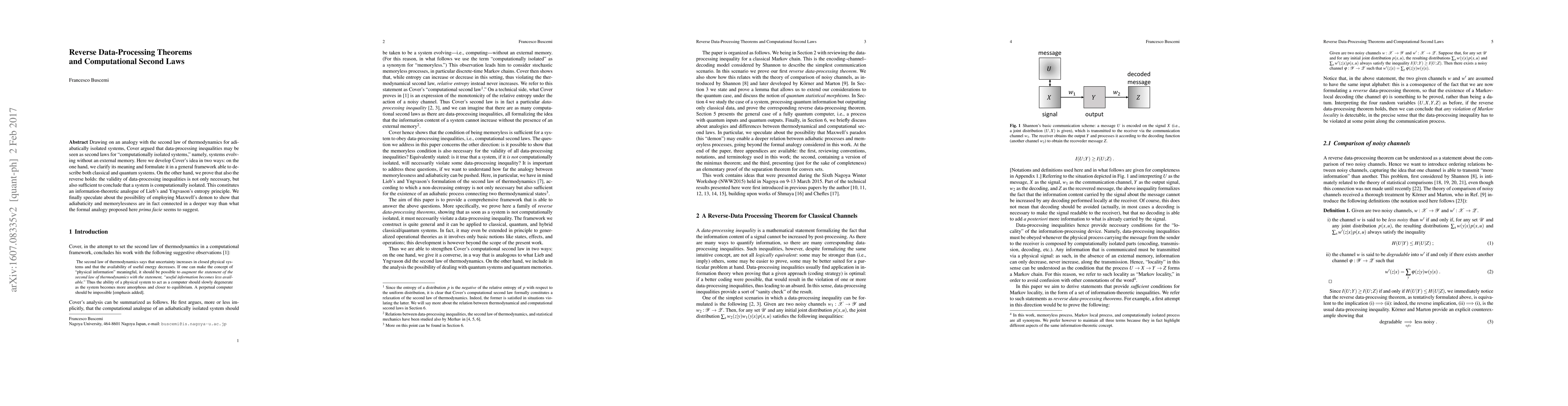 This paper extends Cover's analogy between data-processing inequalities and the second law of thermodynamics, proving that the validity of these inequalities is both necessary and sufficient for a system to be computationally isolated. It also speculates on the deeper connection between adiabaticity and memorylessness through the lens of Maxwell's demon.