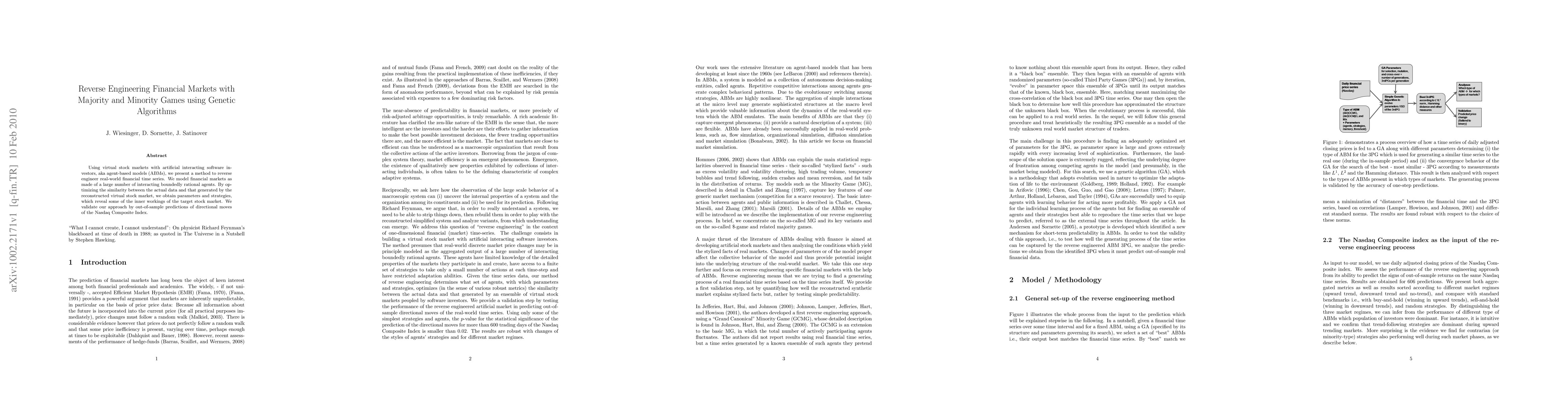 Using virtual stock markets with artificial interacting software investors, aka agent-based models (ABMs), we present a method to reverse engineer real-world financial time series. We model financial markets as made of a large number of interacting boundedly rational agents. By optimizing the similarity between the actual data and that generated by the reconstructed virtual stock market, we obtain parameters and strategies, which reveal some of the inner workings of the target stock market. We validate our approach by out-of-sample predictions of directional moves of the Nasdaq Composite Index.