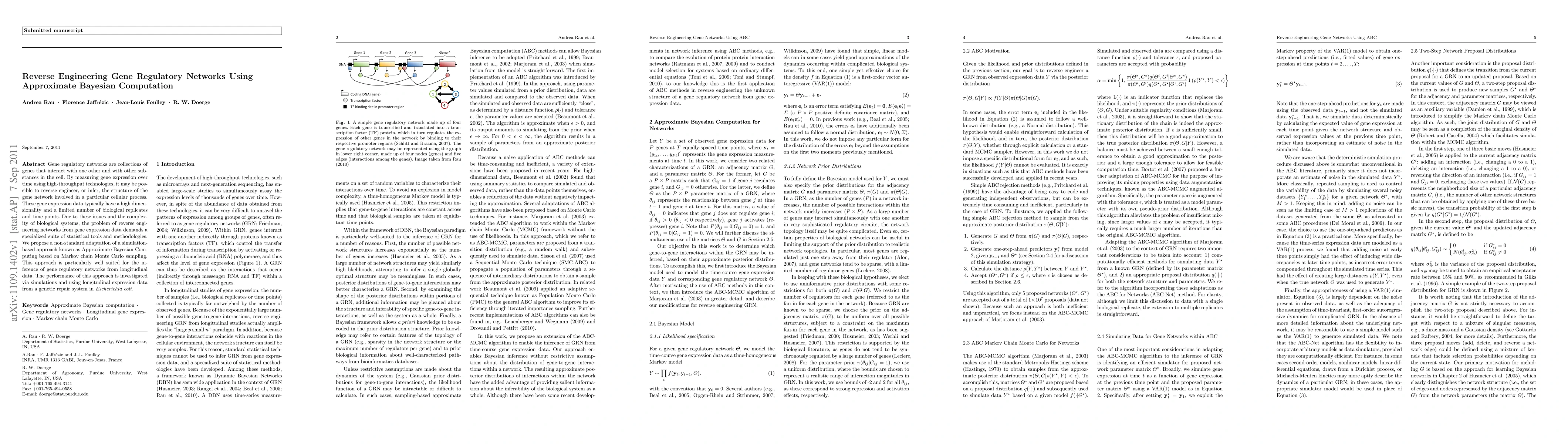 This paper proposes a specialized Approximate Bayesian Computation method for reverse engineering gene regulatory networks from high-dimensional gene expression data. The approach, adapted for Markov chain Monte Carlo sampling, is tested on longitudinal data from a genetic repair system in Escherichia coli, demonstrating its potential for inferring complex gene networks.