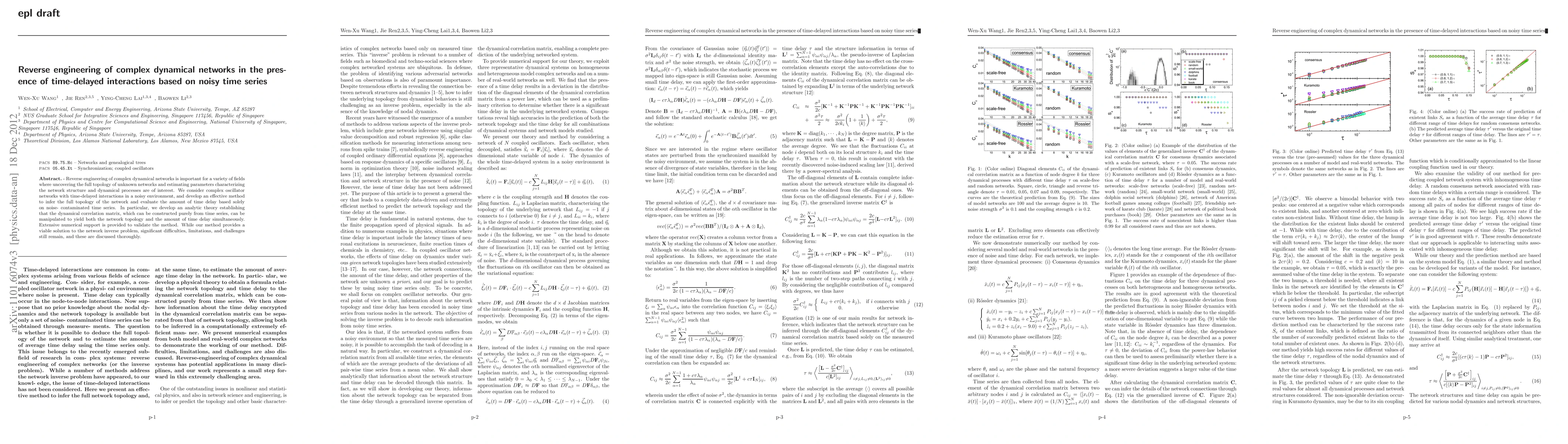 This paper proposes a method to reverse engineer complex dynamical networks with time-delayed interactions from noisy time series data, using an analytic theory to infer network topology and time delay. The method is validated through extensive numerical simulations, though it acknowledges remaining challenges and limitations.