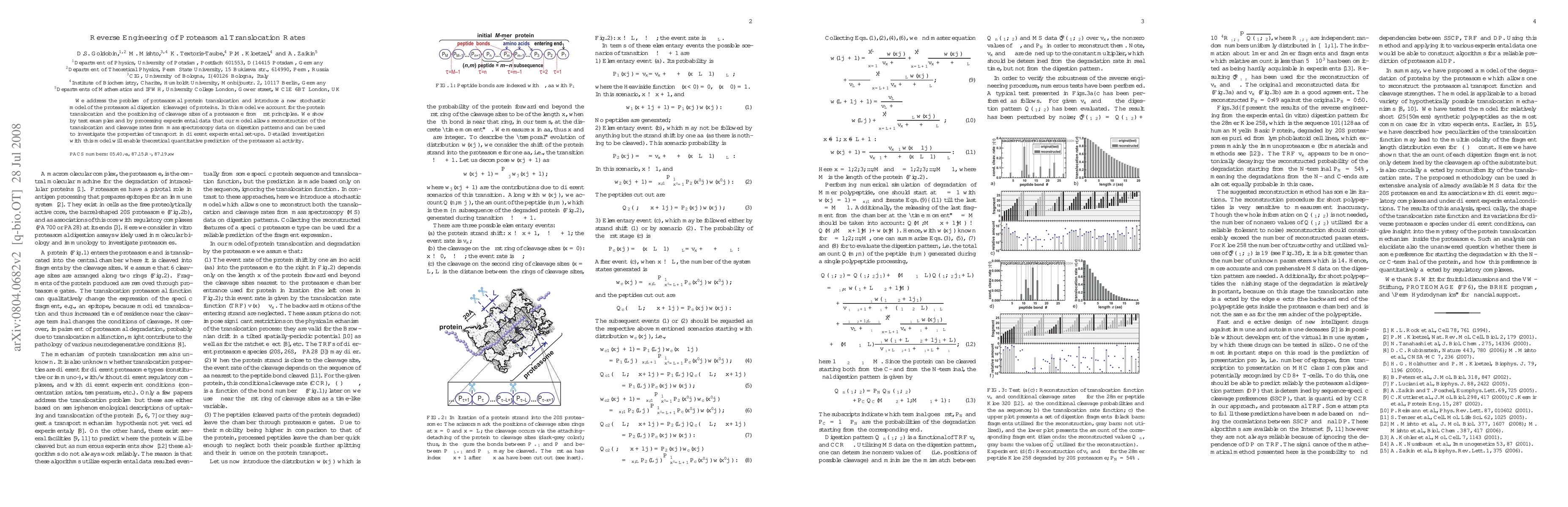 The development of a stochastic model for protein translocation and degradation by proteasomes, allowing for the reconstruction of translocation rates and conditional cleavage rates from experimental data.
