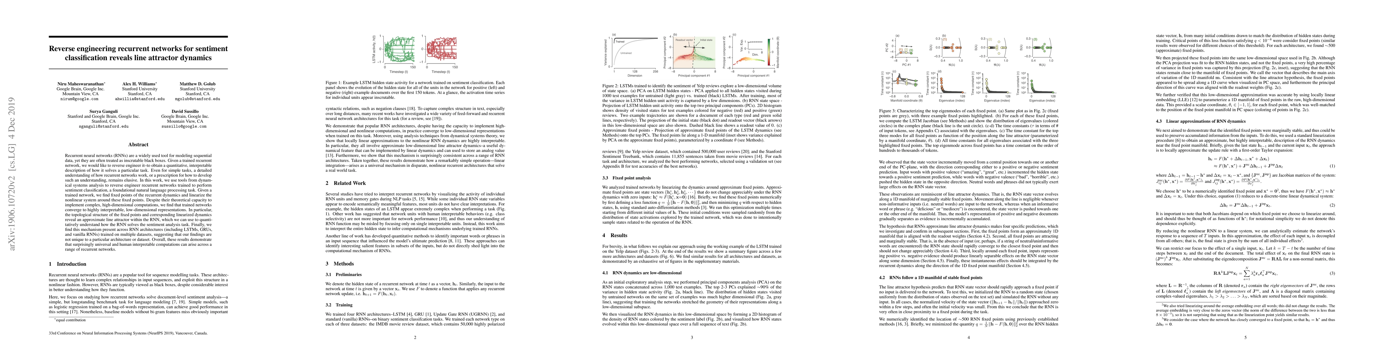 Researchers reverse engineered recurrent neural networks to understand how they solve sentiment classification tasks, finding a universal mechanism that produces human-interpretable computations across multiple architectures.