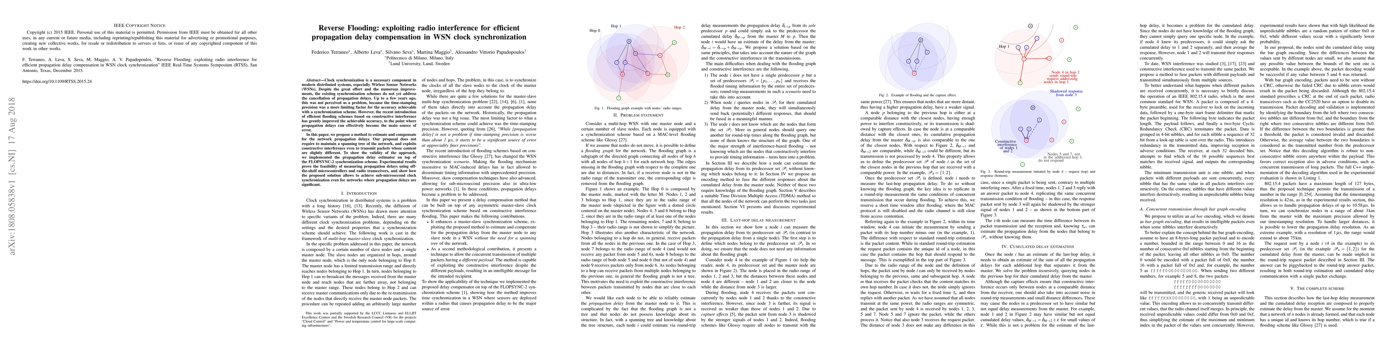This paper proposes a method called Reverse Flooding to compensate for network propagation delays in Wireless Sensor Networks (WSNs) clock synchronization, leveraging constructive interference without requiring a spanning tree. Experimental results demonstrate the feasibility of achieving sub-microsecond synchronization accuracy using off-the-shelf hardware.