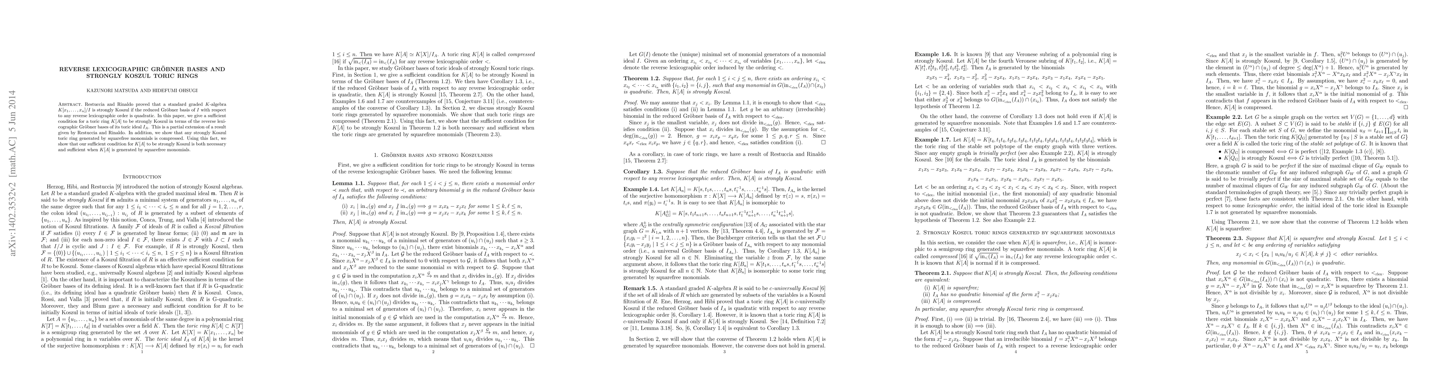 This paper extends Restuccia and Rinaldo's result on strongly Koszul algebras by providing a sufficient condition for toric rings, specifically those generated by squarefree monomials, to be strongly Koszul based on the reverse lexicographic Gröbner bases of their toric ideals. It also demonstrates that such toric rings are compressed and establishes that the condition is both necessary and sufficient under these conditions.