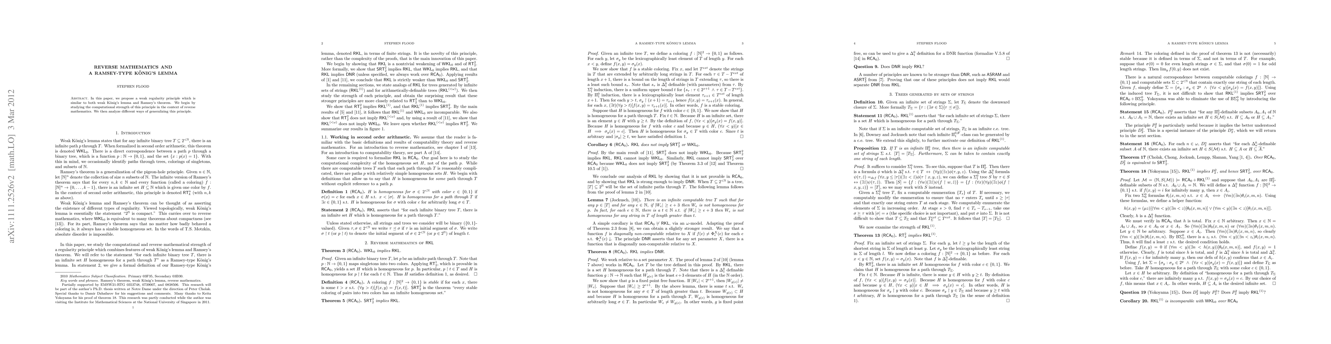 Researchers propose a weak regularity principle inspired by König's Lemma and Ramsey's theorem, exploring its computational strength in reverse mathematics and generalizing it for broader applications.