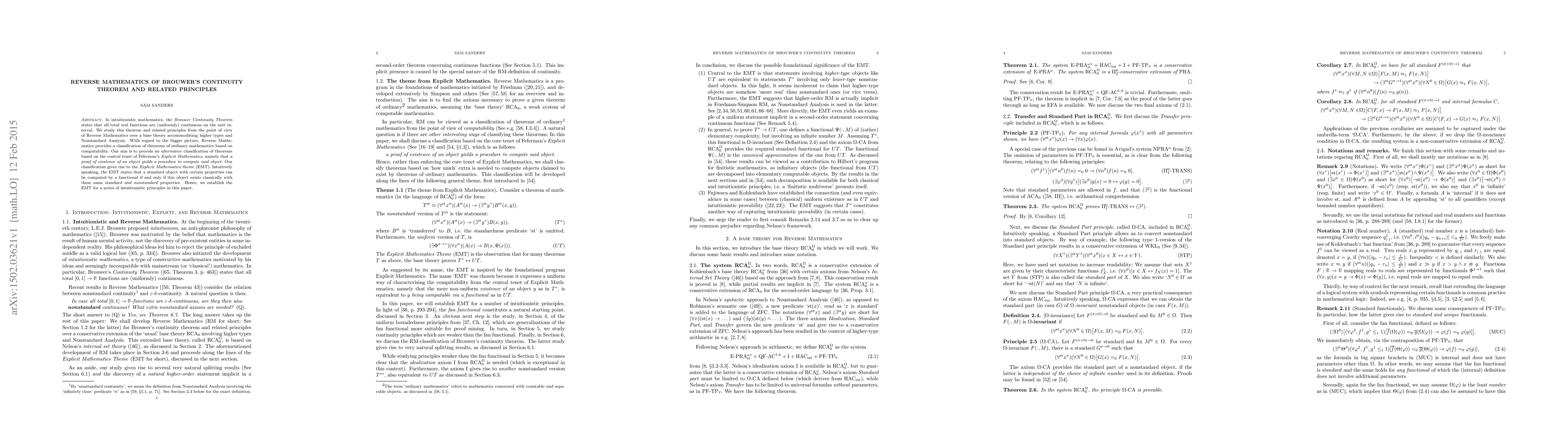 In intuitionistic mathematics, the Brouwer Continuity Theorem states that all total real functions are (uniformly) continuous on the unit interval. We study this theorem and related principles from the point of view of Reverse Mathematics over a base theory accommodating higher types and Nonstandard Analysis. With regard to the bigger picture, Reverse Mathematics provides a classification of theorems of ordinary mathematics based on computability. Our aim is to provide an alternative classification of theorems based on the central tenet of Feferman's Explicit Mathematics}, namely that a proof of existence of an object yields a procedure to compute said object. Our classification gives rise to the Explicit Mathematics theme (EMT). Intuitively speaking, the EMT states that a standard object with certain properties can be computed by a functional if and only if this object exists classically with these same standard and nonstandard properties. Hence, we establish the EMT for a series of intuitionistic principles in this paper.