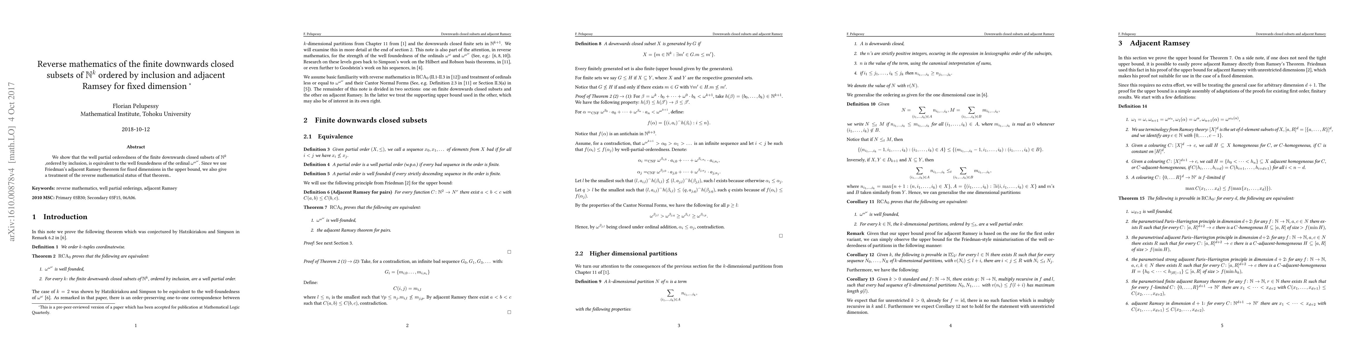 We show that the well-partial orderedness of the finite downwards closed subsets of $\mathbb{N}^k$ ,ordered by inclusion, is equivalent to the well-foundedness of the ordinal $\omega^{\omega^\omega}$. This was conjectured to be the case by Hatzikiriakou and Simpson. Since we use Friedman's adjacent Ramsey theorem for fixed dimensions in the upper bound, we also give a treatment of the reverse mathematical status of that theorem.