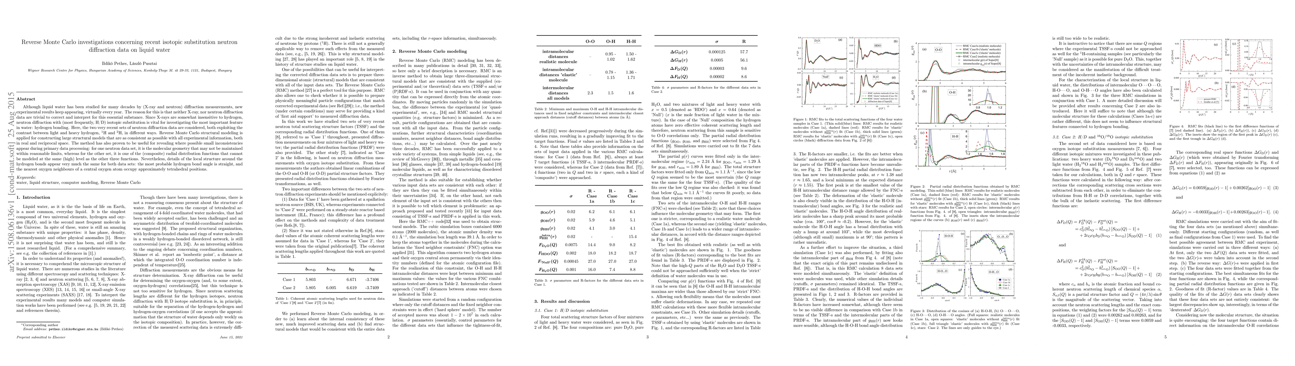 This paper uses Reverse Monte Carlo modeling to analyze recent isotopic substitution neutron diffraction data on liquid water, revealing consistent local hydrogen bonding structures despite minor inconsistencies in data processing. The models show a straight hydrogen bond angle and tetrahedral oxygen neighbor arrangements.