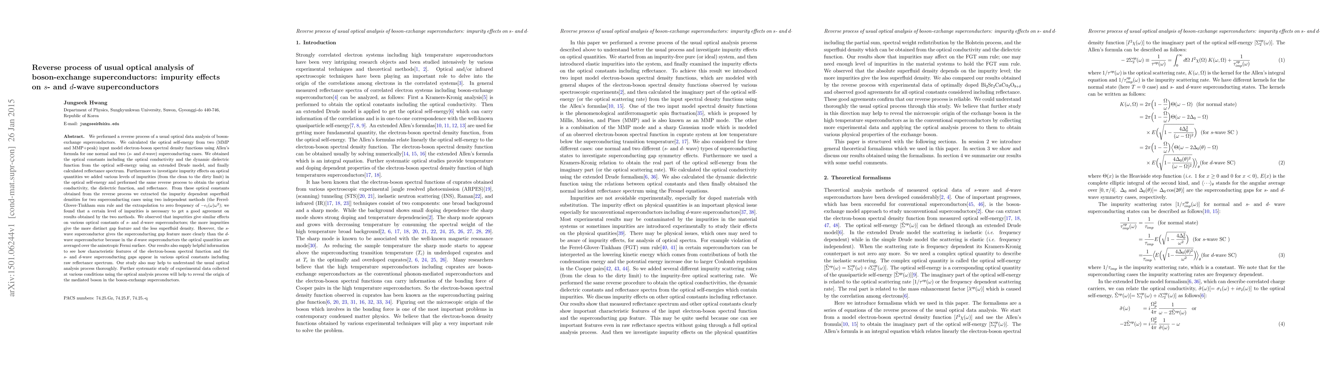 This paper investigates the reverse process of optical analysis in boson-exchange superconductors, focusing on impurity effects on $s$- and $d$-wave superconductors. It calculates optical constants and reflectance spectra, revealing that impurities enhance the superconducting gap feature and reduce superfluid density, with $s$-wave superconductors showing clearer gap features than $d$-wave due to anisotropic Fermi surface averaging.