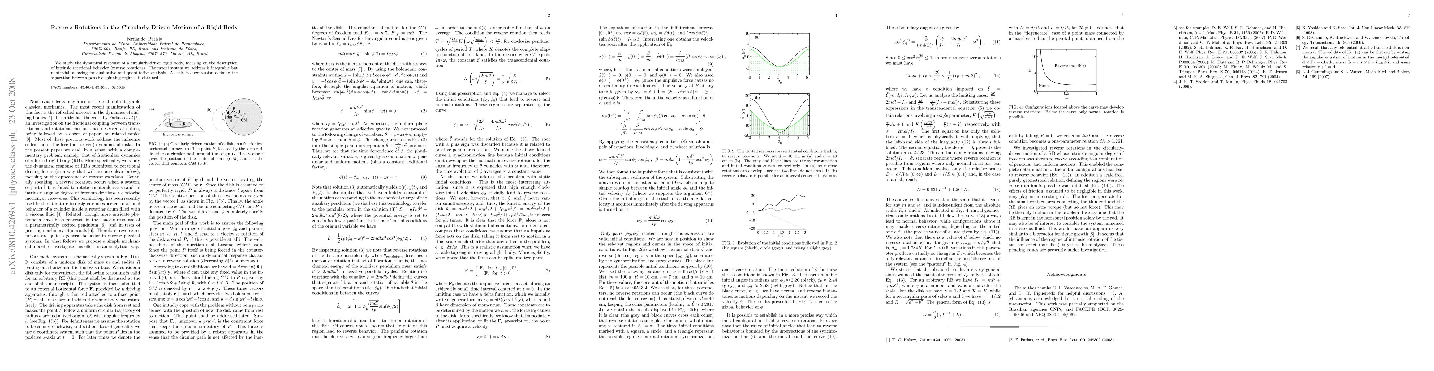 We study the dynamical response of a circularly-driven rigid body, focusing on the description of intrinsic rotational behavior (reverse rotations). The model system we address is integrable but nontrivial, allowing for qualitative and quantitative analysis. A scale free expression defining the separation between possible spinning regimes is obtained.