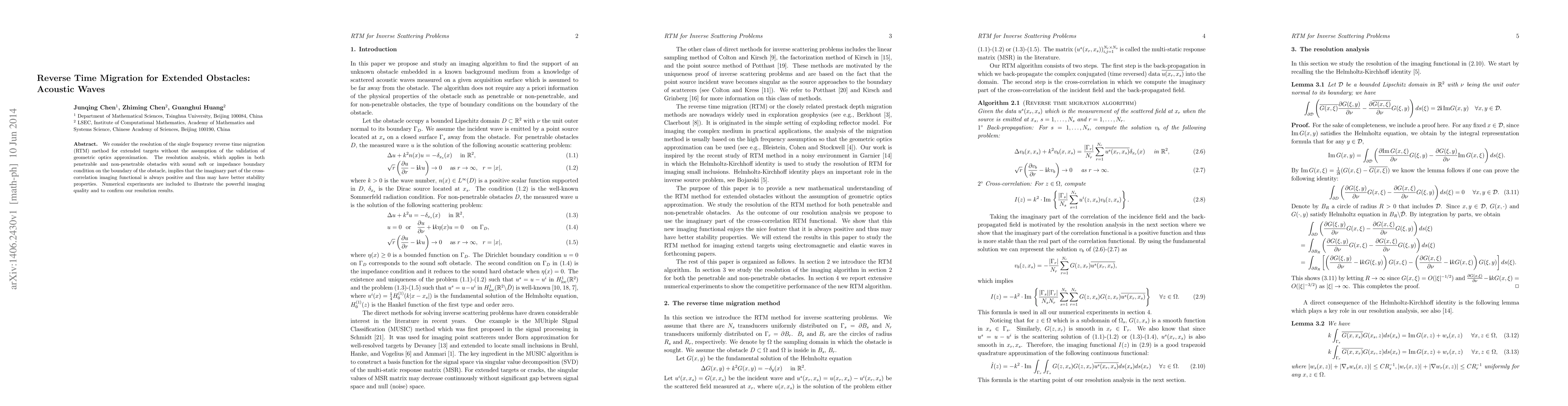 This paper investigates the resolution of single frequency reverse time migration (RTM) for extended obstacles, without relying on geometric optics approximation. It demonstrates that the method maintains stability through the positive imaginary part of the cross-correlation imaging functional, validated by numerical experiments showcasing high-quality imaging.