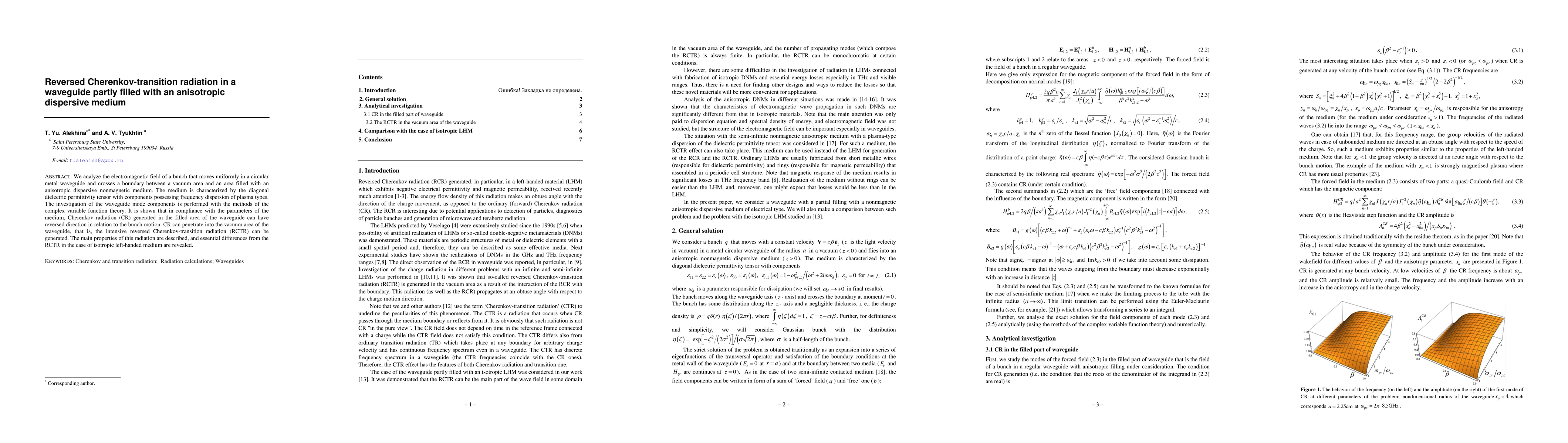 This paper investigates the reversed Cherenkov-transition radiation (RCTR) in a circular metal waveguide when a charged particle bunch crosses a boundary into an area filled with an anisotropic dispersive medium. The study reveals that under specific conditions, Cherenkov radiation can reverse direction relative to the particle bunch, leading to intensive RCTR that can penetrate into the vacuum area of the waveguide.