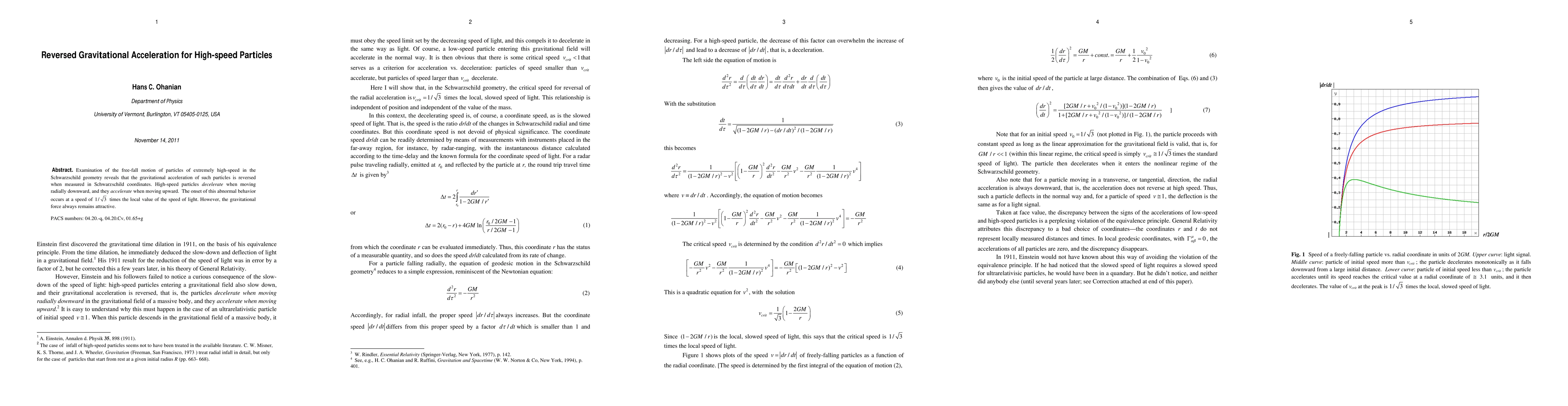 Examination of the free-fall motion of particles of extremely high-speed in the Schwarzschild geometry reveals that the gravitational acceleration of such particles is reversed when measured in Schwarzschild coordinates. High-speed particles decelerate when moving radially downward, and they accelerate when moving upward. The onset of this abnormal behavior occurs at a speed of 1/Sqrt(3) times the local value of the speed of light. However, the gravitational force always remains attractive. PACS numbers: 04.20.-q, 04.20.Cv, 01.65+g