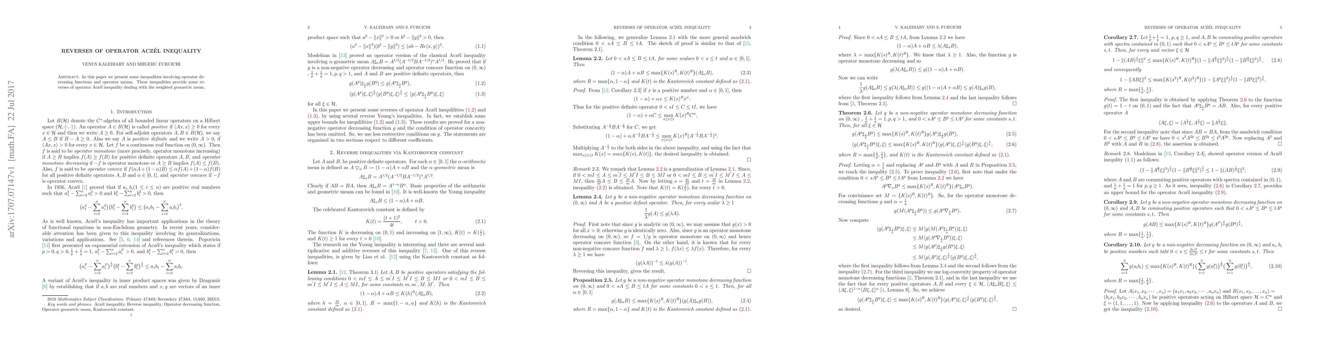 Summary: This paper introduces inequalities that reverse the operator Aczél inequality, focusing on operator decreasing functions and means, particularly the weighted geometric mean. These results provide a deeper understanding of the relationships and bounds within operator theory.