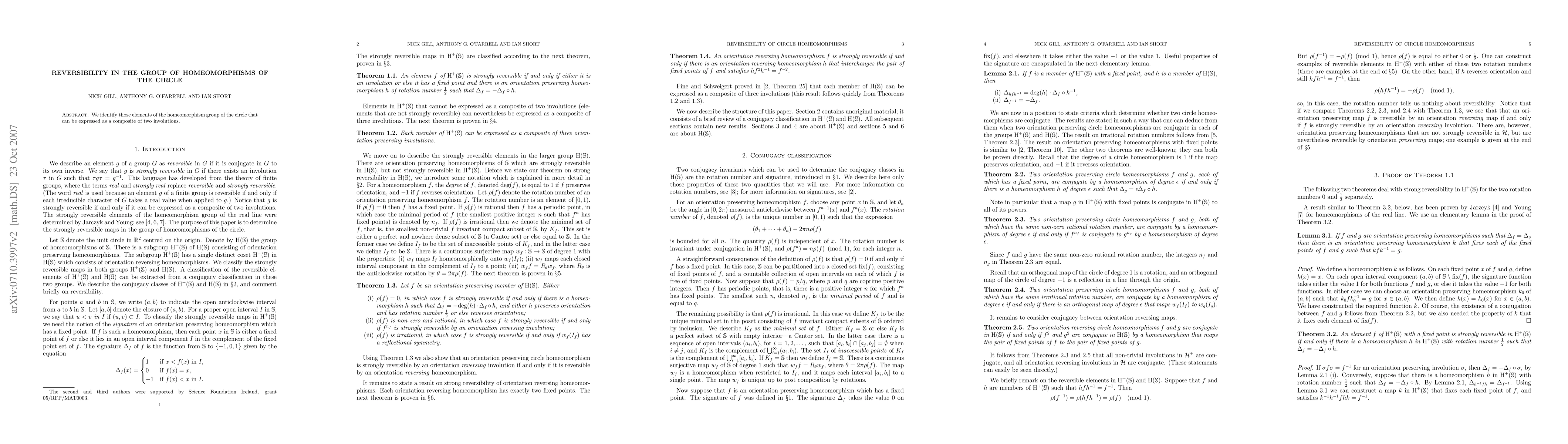 We identify those elements of the homeomorphism group of the circle that can be expressed as a composite of two involutions.