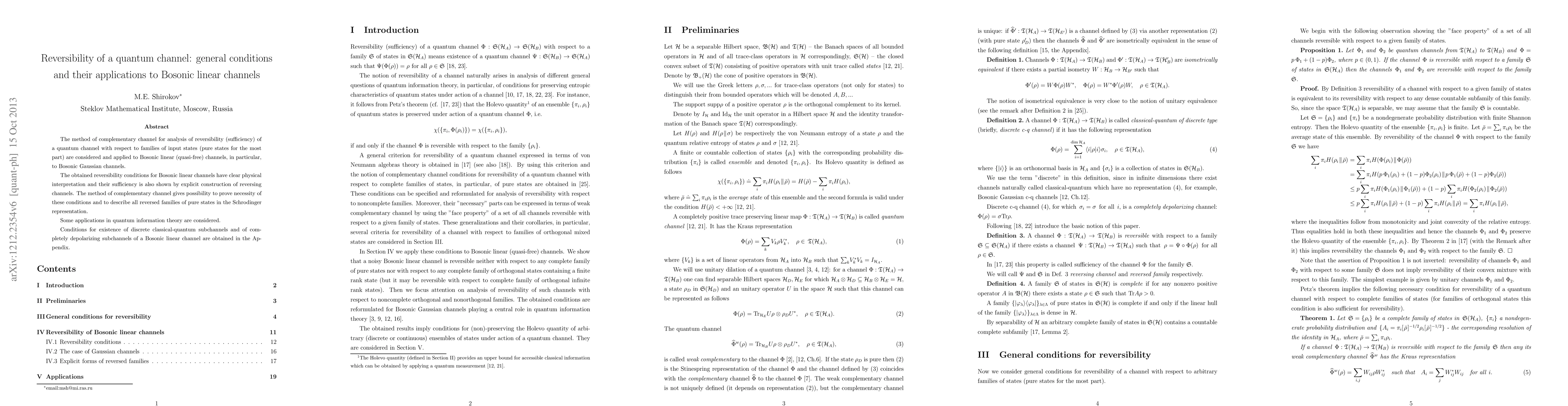 This paper studies the reversibility of quantum channels, specifically Bosonic linear channels, and develops conditions for their reversibility with clear physical interpretations. These findings have implications for quantum information theory and the study of subchannels within quantum systems.