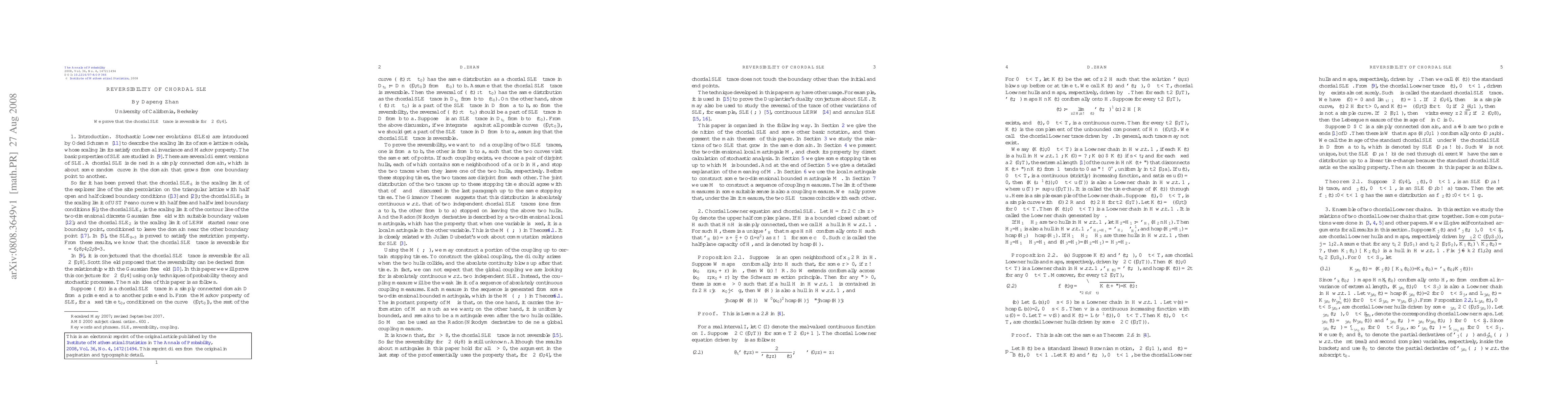 The paper provides rigorous mathematical proofs for the reversibility of chordal SLE_κ, introducing new techniques for analyzing the associated martingale properties and stopping times.