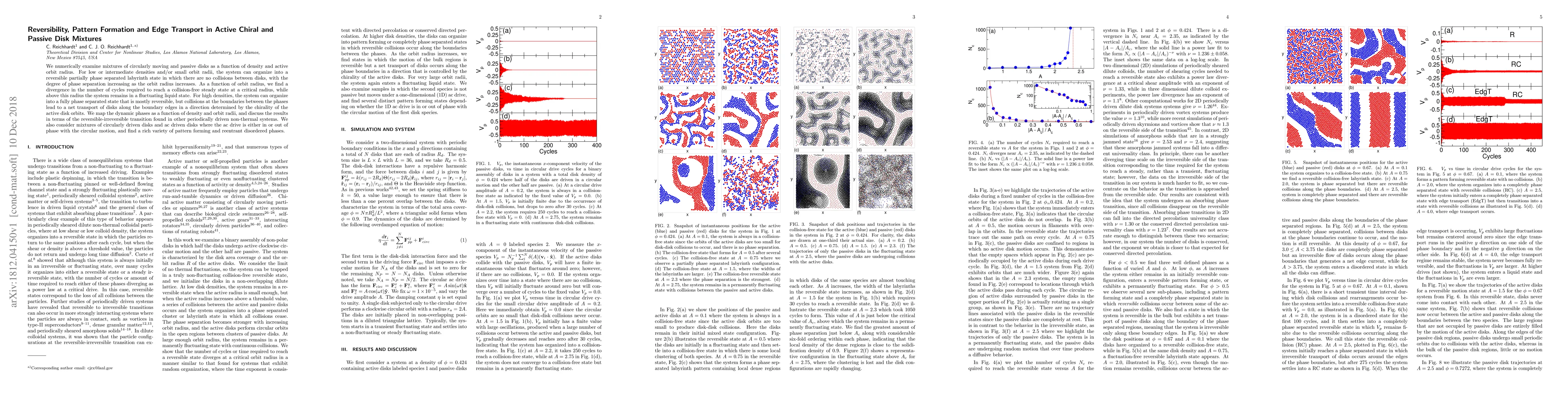 We numerically examine mixtures of circularly moving and passive disks as a function of density and active orbit radius. For low or intermediate densities and/or small orbit radii, the system can organize into a reversible partially phase separated labyrinth state in which there are no collisions between disks, with the degree of phase separation increasing as the orbit radius increases. As a function of orbit radius, we find a divergence in the number of cycles required to reach a collision-free steady state at a critical radius, while above this radius the system remains in a fluctuating liquid state. For high densities, the system can organize into a fully phase separated state that is mostly reversible, but collisions at the boundaries between the phases lead to a net transport of disks along the boundary edges in a direction determined by the chirality of the active disk orbits. We map the dynamic phases as a function of density and orbit radii, and discuss the results in terms of the reversible-irreversible transition found in other periodically driven non-thermal systems. We also consider mixtures of circularly driven disks and ac driven disks where the ac drive is either in or out of phase with the circular motion, and find a rich variety of pattern forming and reentrant disordered phases.