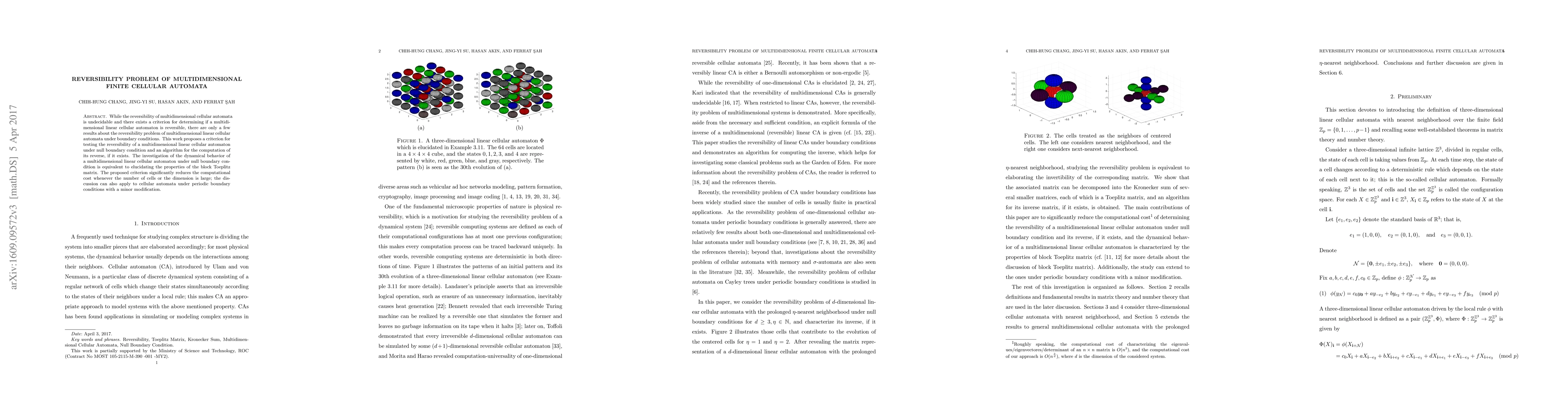 This paper proposes a criterion for determining the reversibility of multidimensional linear cellular automata under null boundary conditions and presents an algorithm for computing their reverse. The method leverages the properties of block Toeplitz matrices to significantly reduce computational costs.