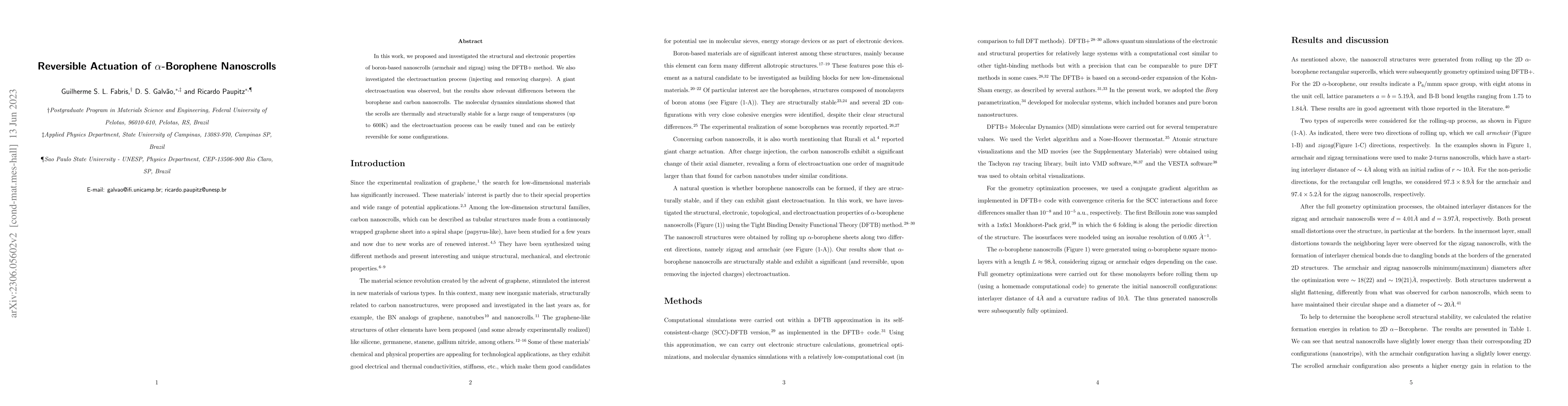 This study investigates the structural and electronic properties of boron-based nanoscrolls using DFTB+ and finds significant differences in electroactuation compared to carbon nanoscrolls. The simulations demonstrate reversible and thermally stable electroactuation over a broad temperature range.