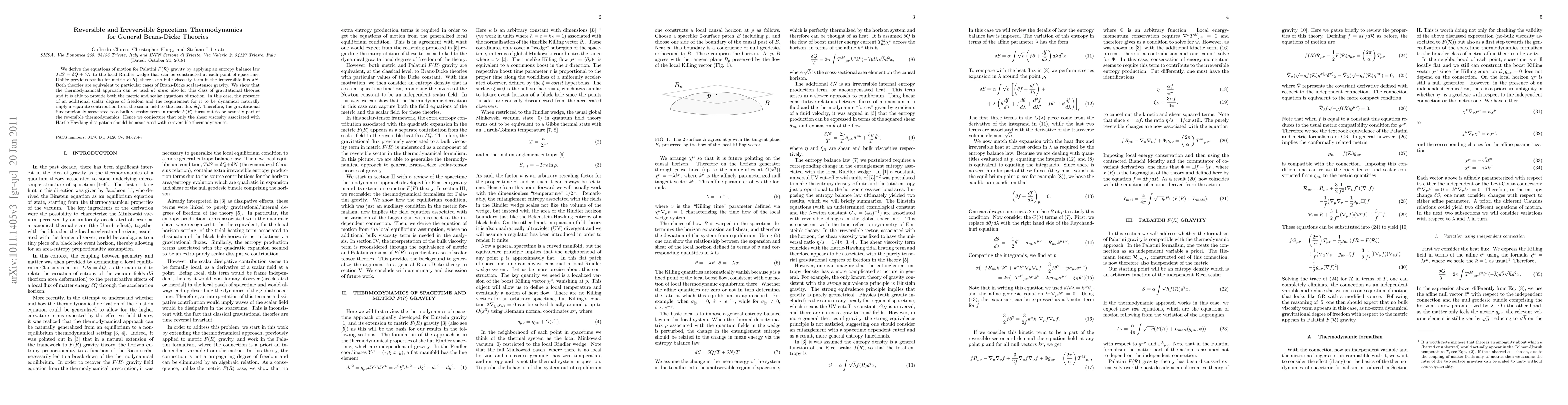 We derive the equations of motion for Palatini F(R) gravity by applying an entropy balance law T dS= \delta Q+\delta N to the local Rindler wedge that can be constructed at each point of spacetime. Unlike previous results for metric F(R), there is no bulk viscosity term in the irreversible flux \delta N. Both theories are equivalent to particular cases of Brans-Dicke scalar-tensor gravity. We show that the thermodynamical approach can be used ab initio also for this class of gravitational theories and it is able to provide both the metric and scalar equations of motion. In this case, the presence of an additional scalar degree of freedom and the requirement for it to be dynamical naturally imply a separate contribution from the scalar field to the heat flux \delta Q. Therefore, the gravitational flux previously associated to a bulk viscosity term in metric F(R) turns out to be actually part of the reversible thermodynamics. Hence we conjecture that only the shear viscosity associated with Hartle-Hawking dissipation should be associated with irreversible thermodynamics.