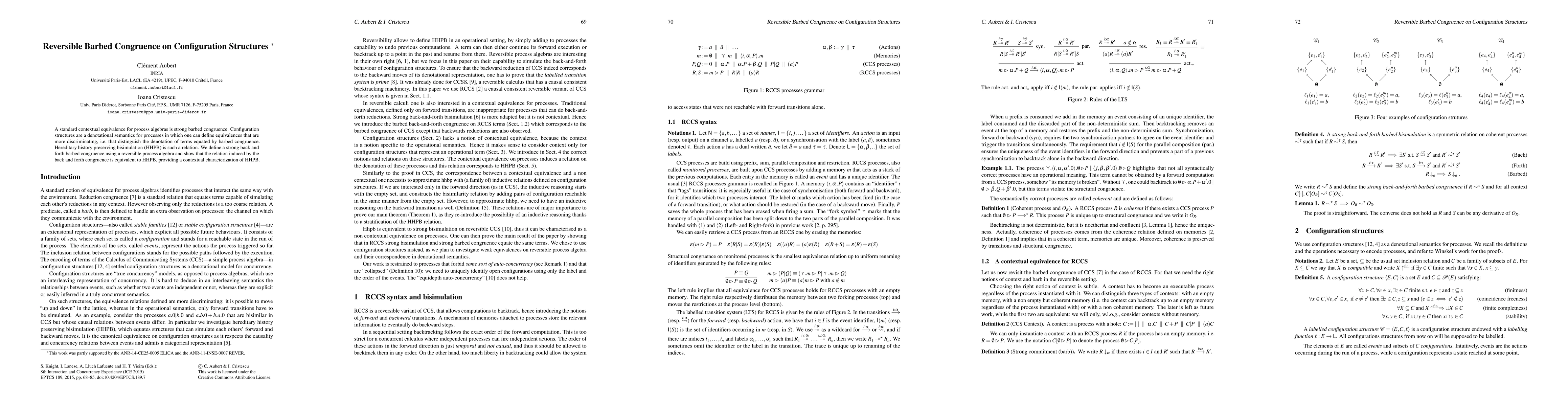 A standard contextual equivalence for process algebras is strong barbed congruence. Configuration structures are a denotational semantics for processes in which one can define equivalences that are more discriminating, i.e. that distinguish the denotation of terms equated by barbed congruence. Hereditary history preserving bisimulation (HHPB) is such a relation. We define a strong back and forth barbed congruence using a reversible process algebra and show that the relation induced by the back and forth congruence is equivalent to HHPB, providing a contextual characterization of HHPB.