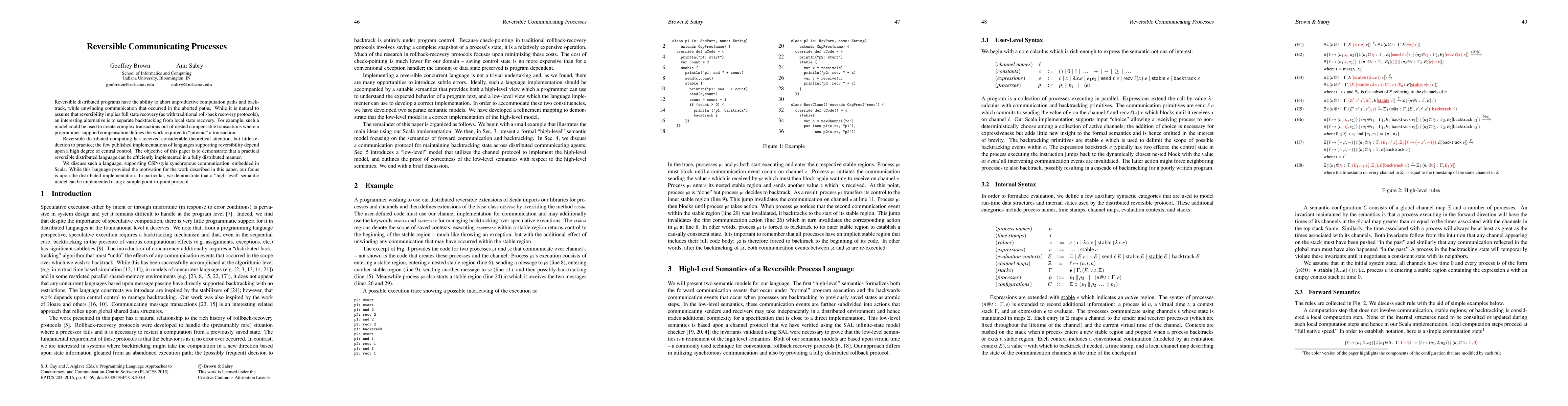 Reversible distributed programs have the ability to abort unproductive computation paths and backtrack, while unwinding communication that occurred in the aborted paths. While it is natural to assume that reversibility implies full state recovery (as with traditional roll-back recovery protocols), an interesting alternative is to separate backtracking from local state recovery. For example, such a model could be used to create complex transactions out of nested compensable transactions where a programmer-supplied compensation defines the work required to "unwind" a transaction. Reversible distributed computing has received considerable theoretical attention, but little reduction to practice; the few published implementations of languages supporting reversibility depend upon a high degree of central control. The objective of this paper is to demonstrate that a practical reversible distributed language can be efficiently implemented in a fully distributed manner. We discuss such a language, supporting CSP-style synchronous communication, embedded in Scala. While this language provided the motivation for the work described in this paper, our focus is upon the distributed implementation. In particular, we demonstrate that a "high-level" semantic model can be implemented using a simple point-to-point protocol.