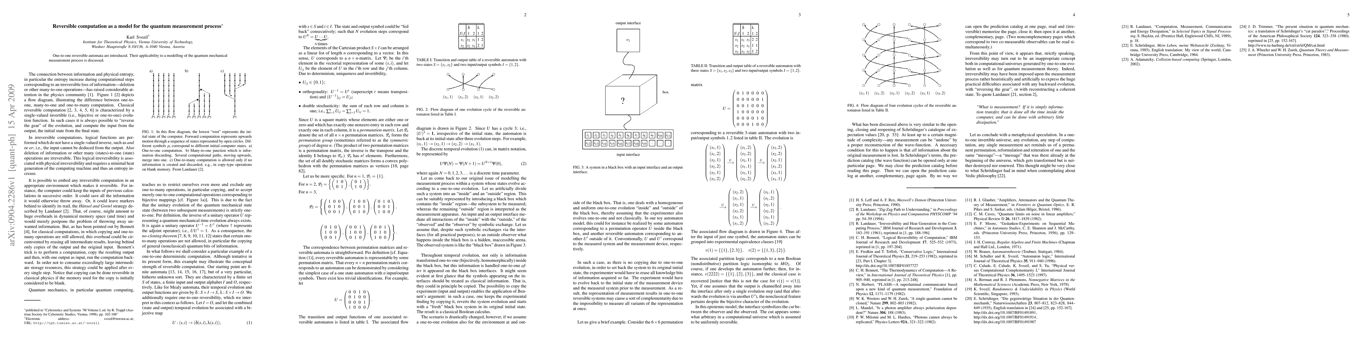 One-to-one reversible automata are introduced. Their applicability to a modelling of the quantum mechanical measurement process is discussed.