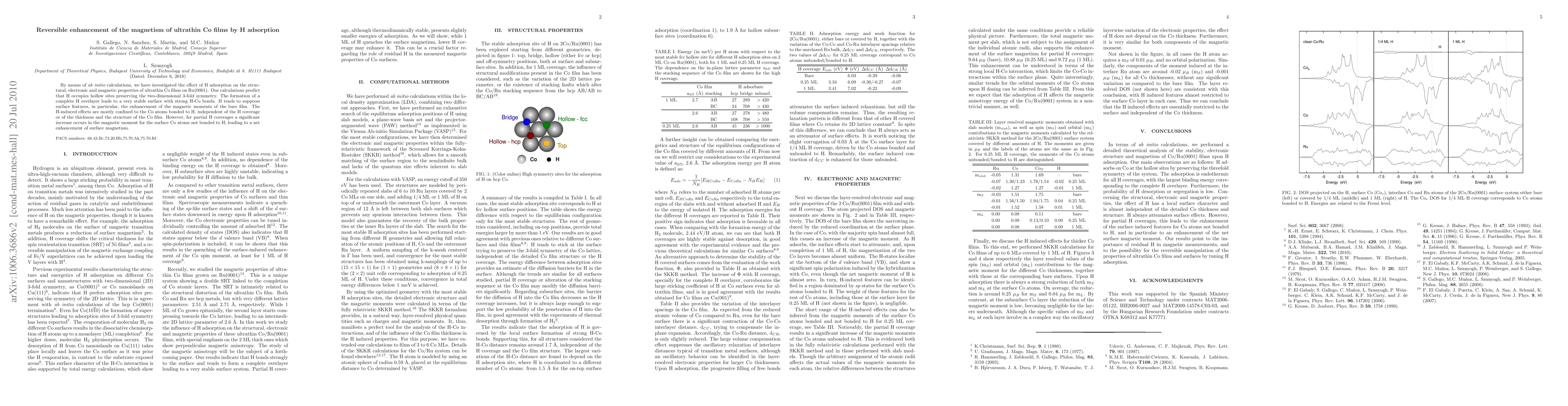 Ab initio calculations reveal that hydrogen (H) adsorption on ultrathin Co films on Ru(0001) suppresses surface magnetic moments but, at partial coverages, enhances magnetic moments of unbound surface Co atoms, leading to net surface magnetism enhancement.