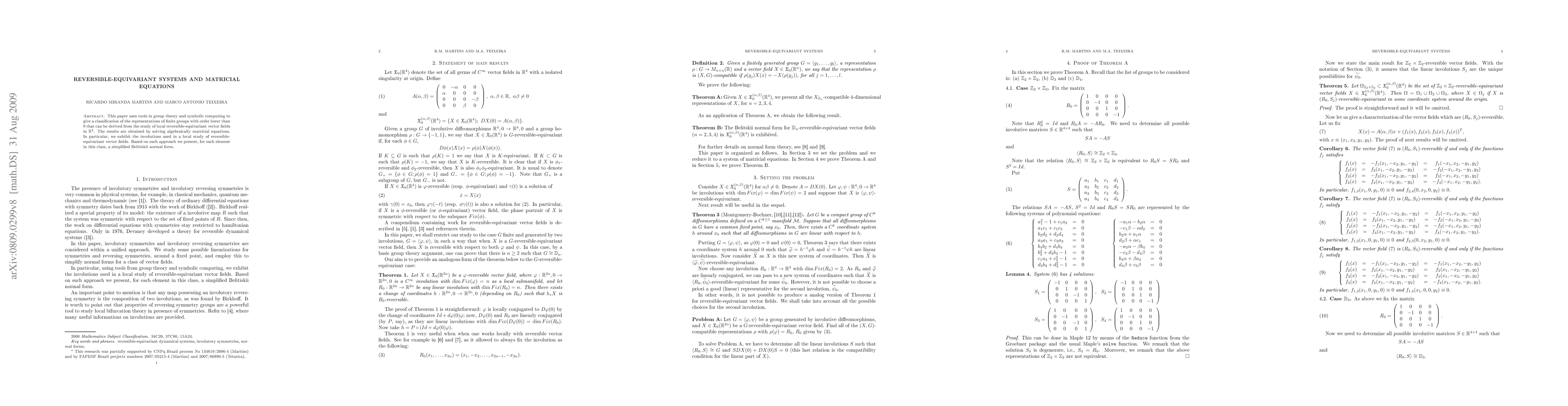 This paper uses tools in group theory and symbolic computing to give a classification of the representations of finite groups with order lower than 9 that can be derived from the study of local reversible-equivariant vector fields in $\rn{4}$. The results are obtained by solving algebraically matricial equations. In particular, we exhibit the involutions used in a local study of reversible-equivariant vector fields. Based on such approach we present, for each element in this class, a simplified Belitiskii normal form.