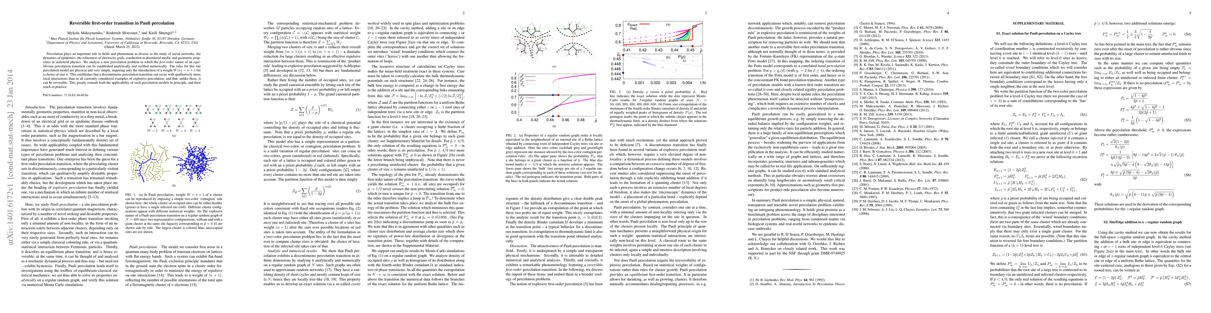 The research analyzes a new percolation model with simple rules requiring only a weight W(n)=n+1 for a cluster of size n, allowing for an analytical and numerical verification of a reversible first-order percolation transition.