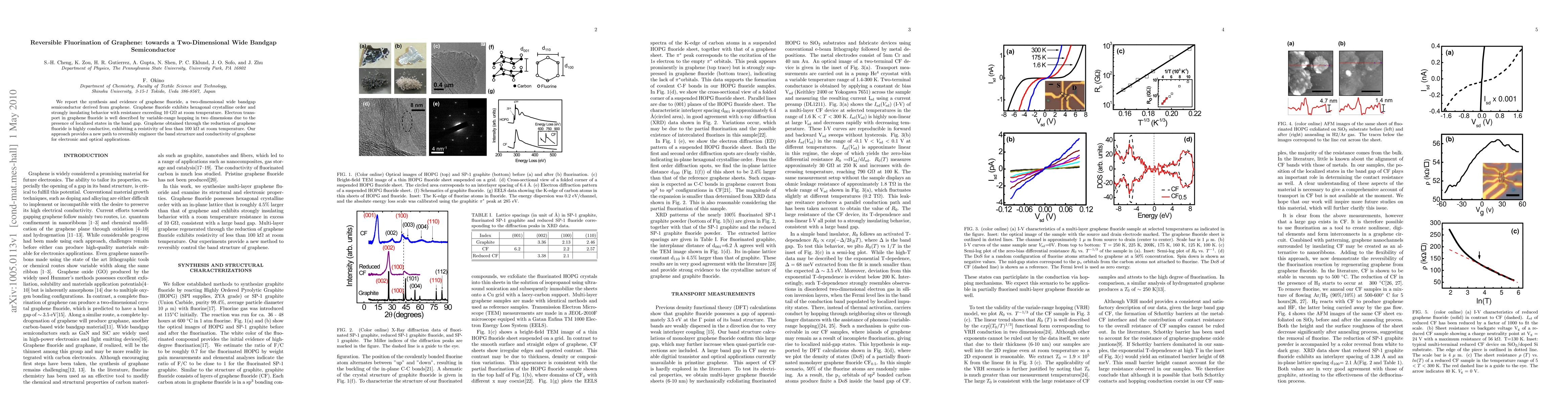 This paper reports the synthesis of graphene fluoride, a two-dimensional wide bandgap semiconductor with strongly insulating properties, and demonstrates its reversible transformation back to highly conductive graphene. The study highlights the potential for engineering graphene's electronic properties for advanced applications.
