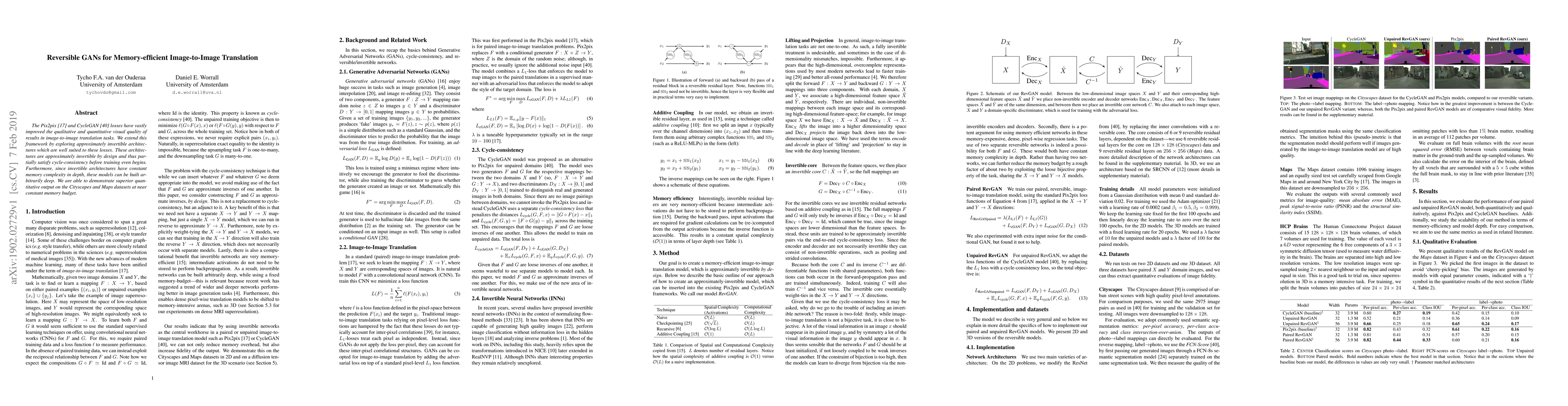 Researchers developed a new architecture for image-to-image translation tasks that is memory-efficient and can produce superior results on datasets like Cityscapes and Maps. Their reversible GANs approach uses approximately invertible architectures to achieve this efficiency.