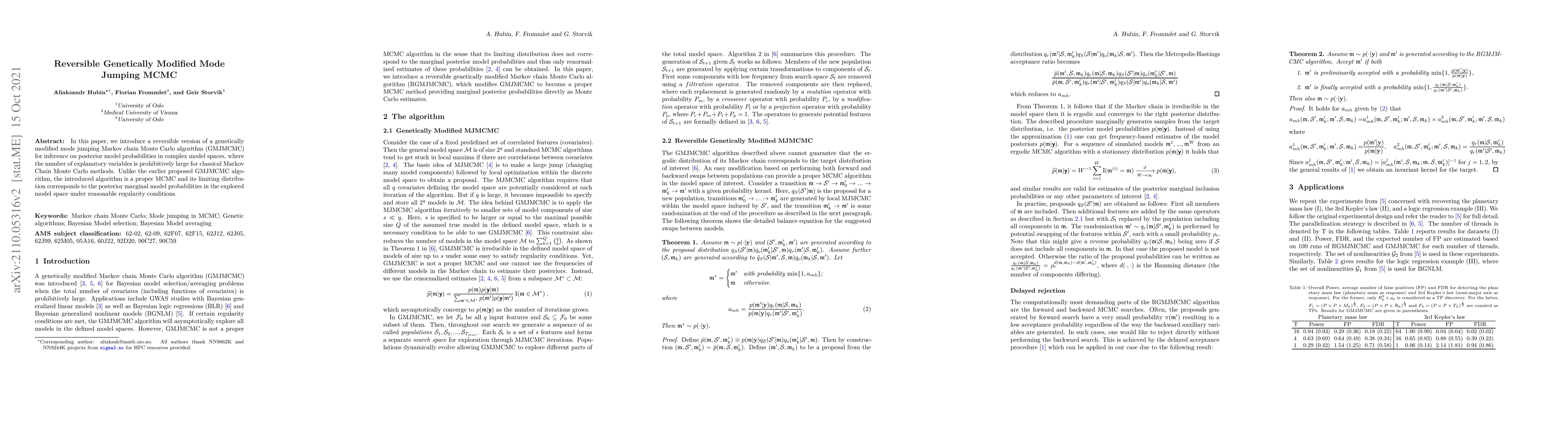 Researchers introduced a reversible GMJMCMC algorithm for complex models with many explanatory variables, providing accurate posterior model probabilities. The new algorithm is a proper MCMC method with a limiting distribution corresponding to marginal model probabilities under reasonable conditions.