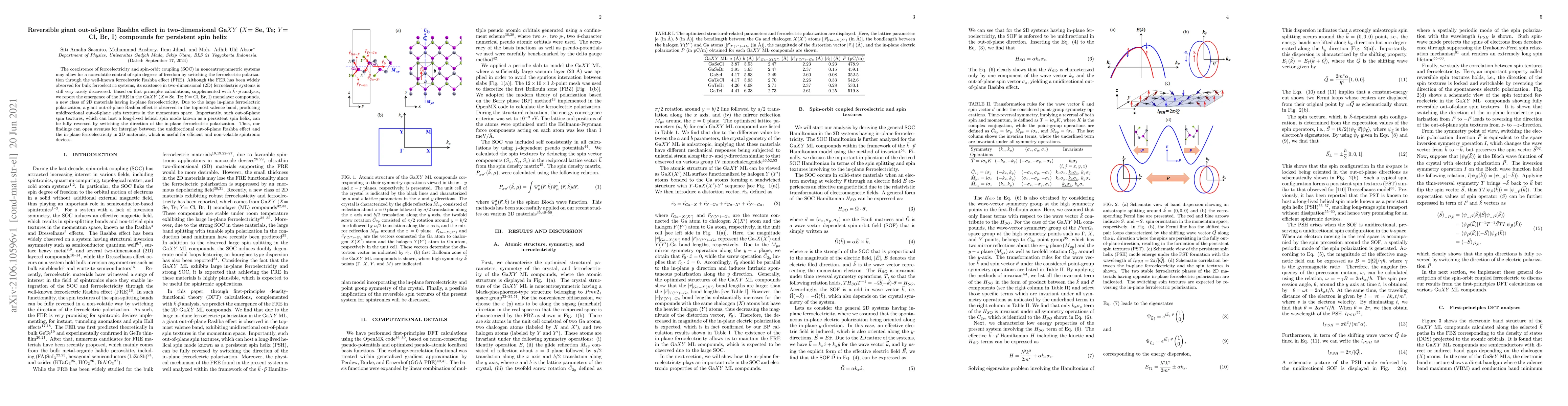 This paper reports the discovery of a reversible giant out-of-plane Rashba effect in two-dimensional Ga$XY$ monolayer compounds, driven by in-plane ferroelectric polarization, leading to persistent spin helix states. The findings suggest potential for non-volatile spintronic applications through the control of spin degrees of freedom via ferroelectric switching.