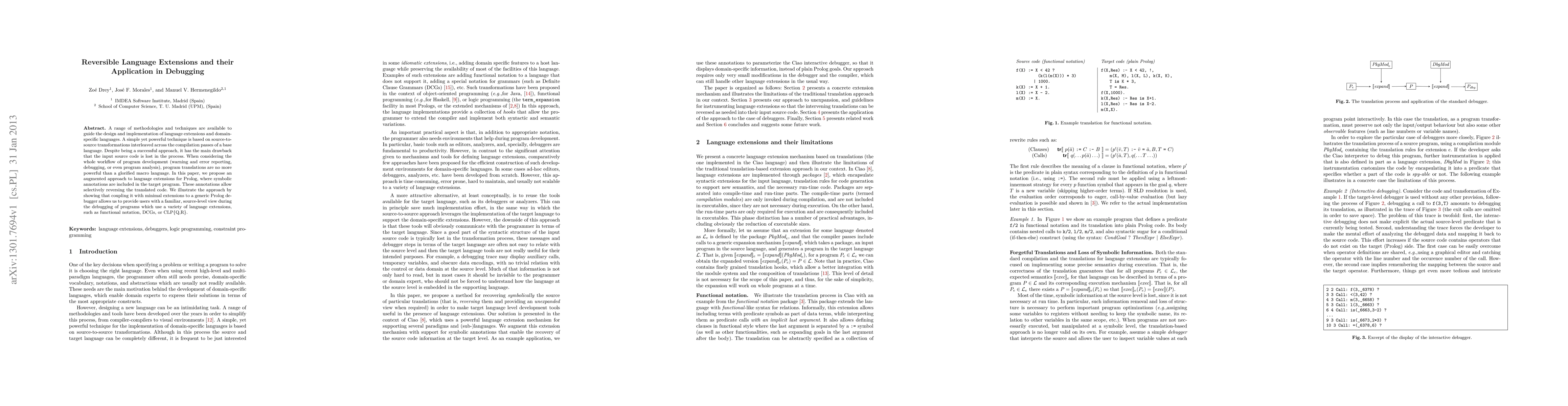 The paper proposes an augmented approach to language extensions for Prolog, incorporating symbolic annotations in the target program to enable selective reversal of translated code, facilitating source-level debugging of programs using various language extensions.