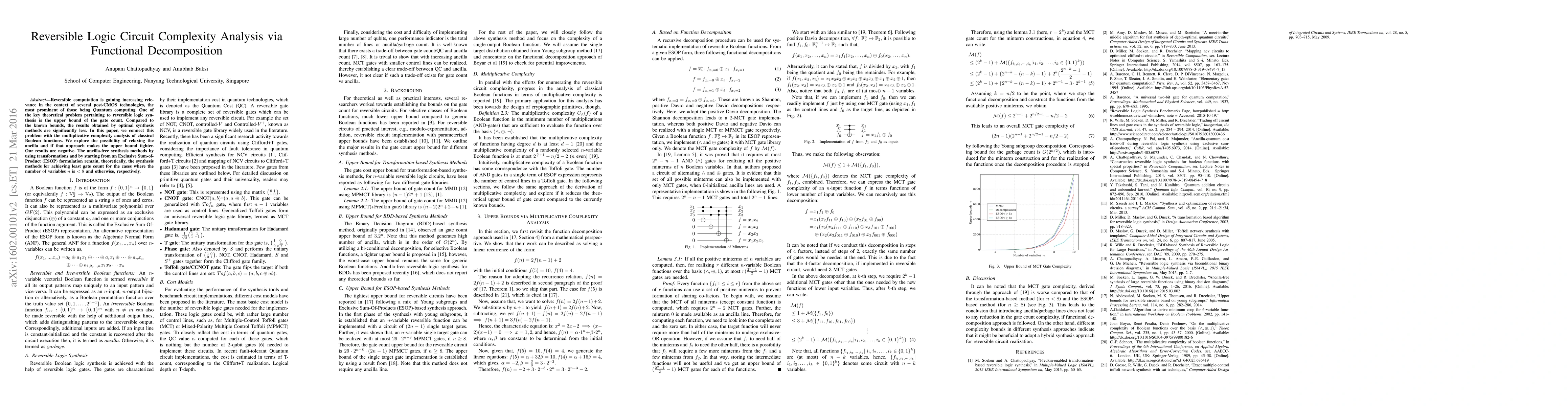 Reversible computation is gaining increasing relevance in the context of several post-CMOS technologies, the most prominent of those being Quantum computing. One of the key theoretical problem pertaining to reversible logic synthesis is the upper bound of the gate count. Compared to the known bounds, the results obtained by optimal synthesis methods are significantly less. In this paper, we connect this problem with the multiplicative complexity analysis of classical Boolean functions. We explore the possibility of relaxing the ancilla and if that approach makes the upper bound tighter. Our results are negative. The ancilla-free synthesis methods by using transformations and by starting from an Exclusive Sum-of-Product (ESOP) formulation remain, theoretically, the synthesis methods for achieving least gate count for the cases where the number of variables $n$ is $< 8$ and otherwise, respectively.