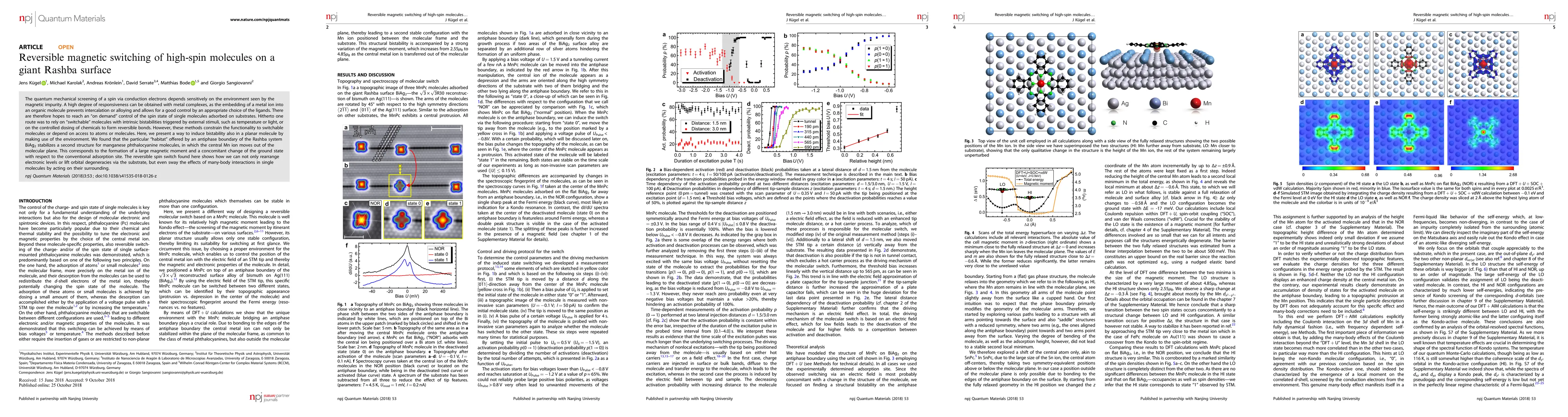 This paper demonstrates reversible magnetic switching of high-spin manganese phthalocyanine molecules on a giant Rashba surface, showing that the environment of an antiphase boundary can induce bistability and control the spin state of adsorbed molecules without relying on intrinsic bistabilities or chemical dosing. This method leverages the substrate's influence to manipulate many-body interactions in single molecules.