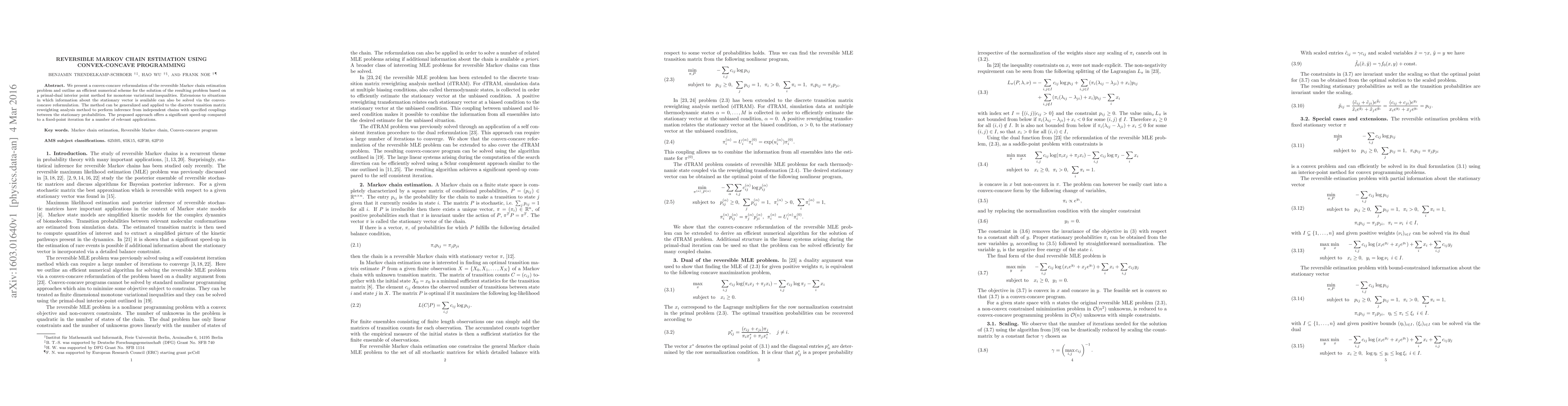 A new method for estimating reversible Markov chains uses convex-concave programming to solve a problem more efficiently than traditional fixed-point iteration methods.