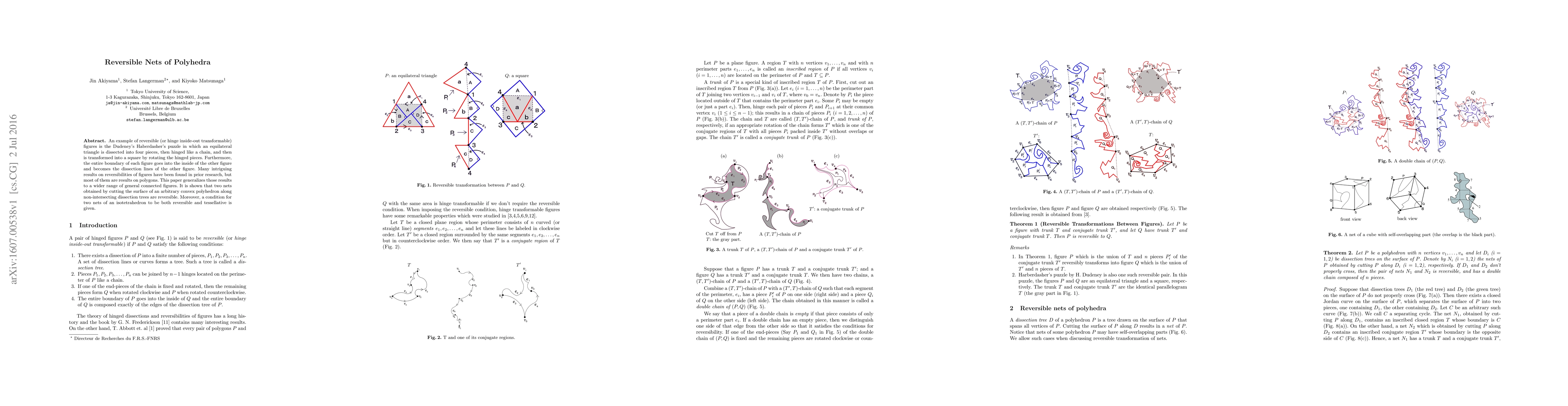 An example of reversible (or hinge inside-out transformable) figures is the Dudeney's Haberdasher's puzzle in which an equilateral triangle is dissected into four pieces, then hinged like a chain, and then is transformed into a square by rotating the hinged pieces. Furthermore, the entire boundary of each figure goes into the inside of the other figure and becomes the dissection lines of the other figure. Many intriguing results on reversibilities of figures have been found in prior research, but most of them are results on polygons. This paper generalizes those results to a wider range of general connected figures. It is shown that two nets obtained by cutting the surface of an arbitrary convex polyhedron along non-intersecting dissection trees are reversible. Moreover, a condition for two nets of an isotetrahedron to be both reversible and tessellative is given.